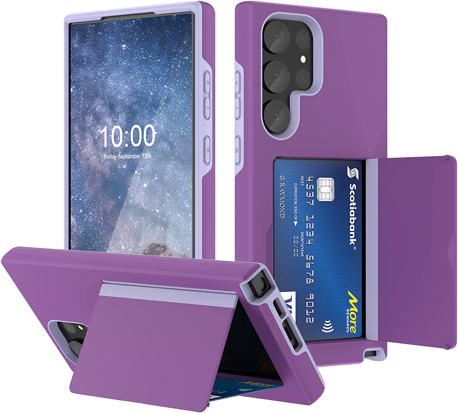 Compatible with Galaxy S23 Ultra Case with Kickstand ID Credit Card Holder for Samsung S23 Ultra Protective Shockproof Phone Wallet Case Cover (Purple)