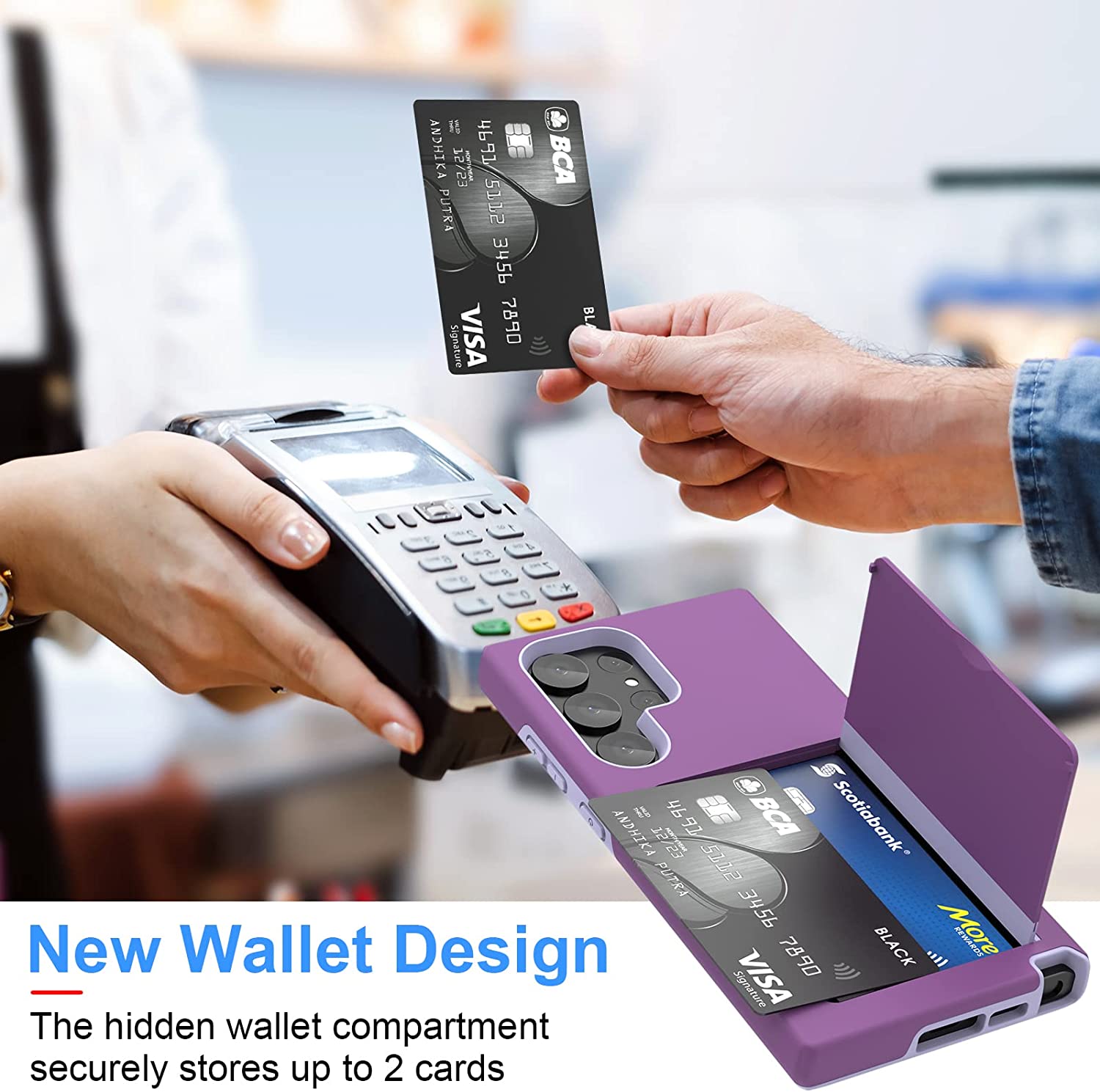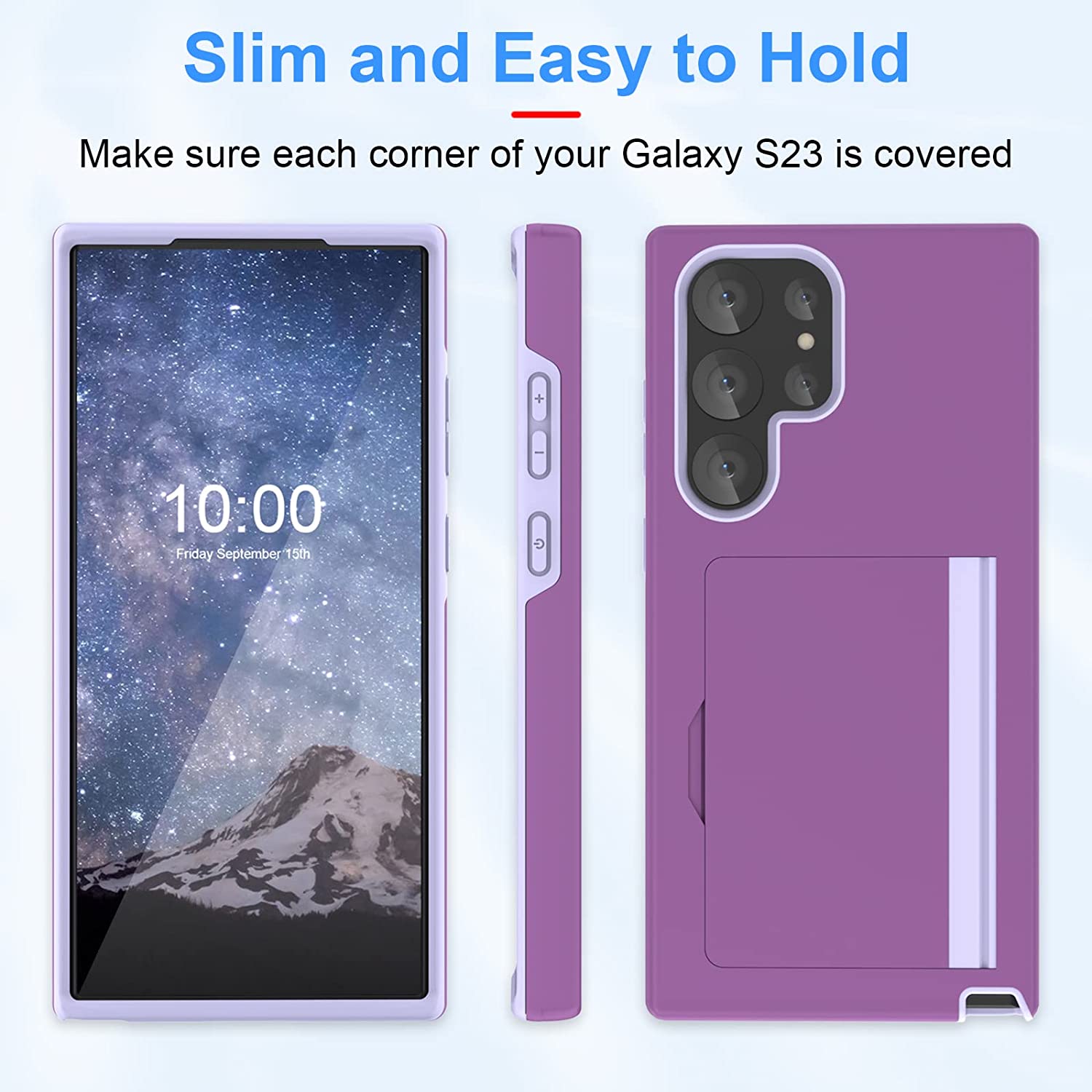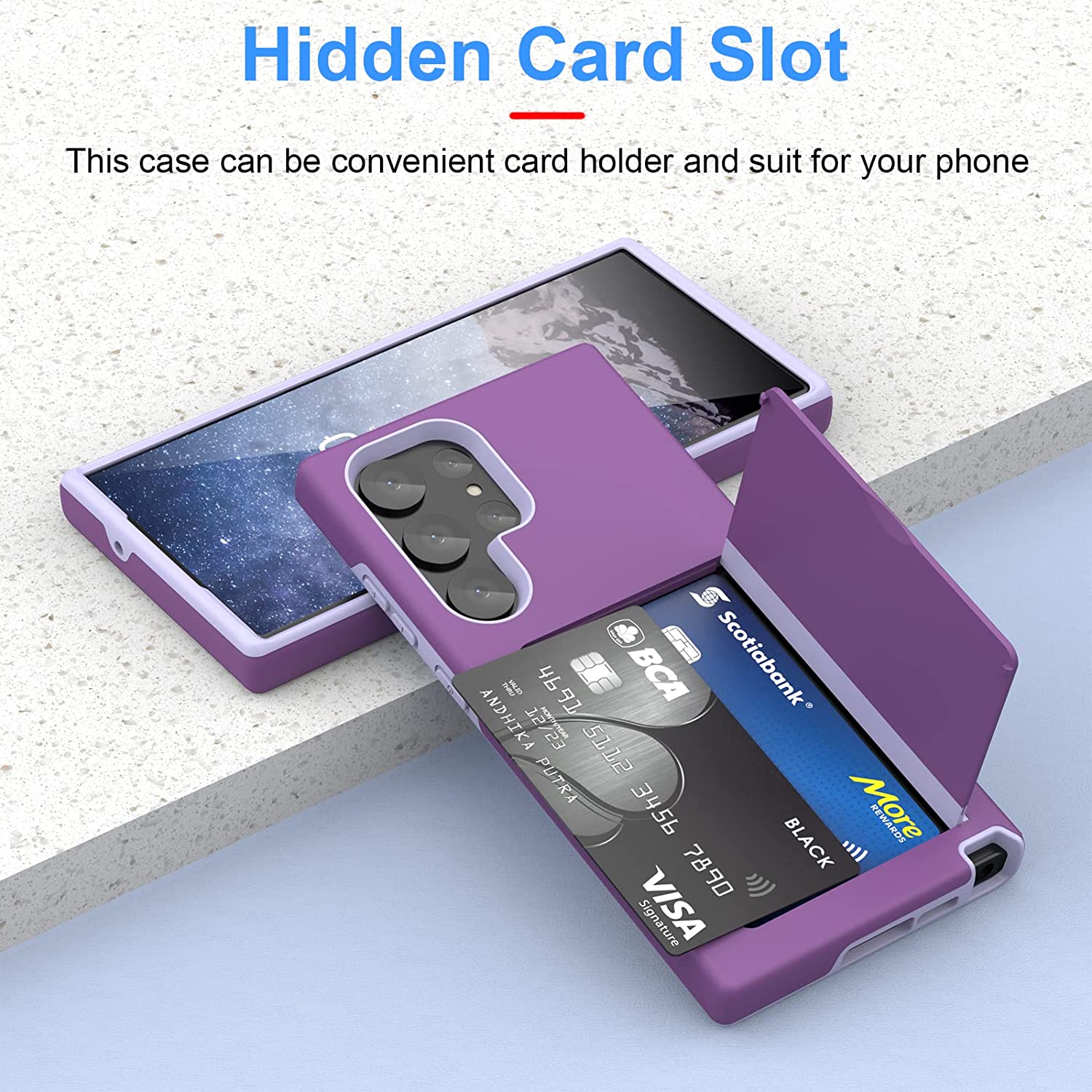 • 【Sliding Card Slot】Hidden Card Wallet is on the back of Samsung S23 Ultra case, which can store 2 cards securely, put in your credit card, debit card, ID, driver's license, or cash, very portable.You needn't bring an extra card bag if you have this phone case.