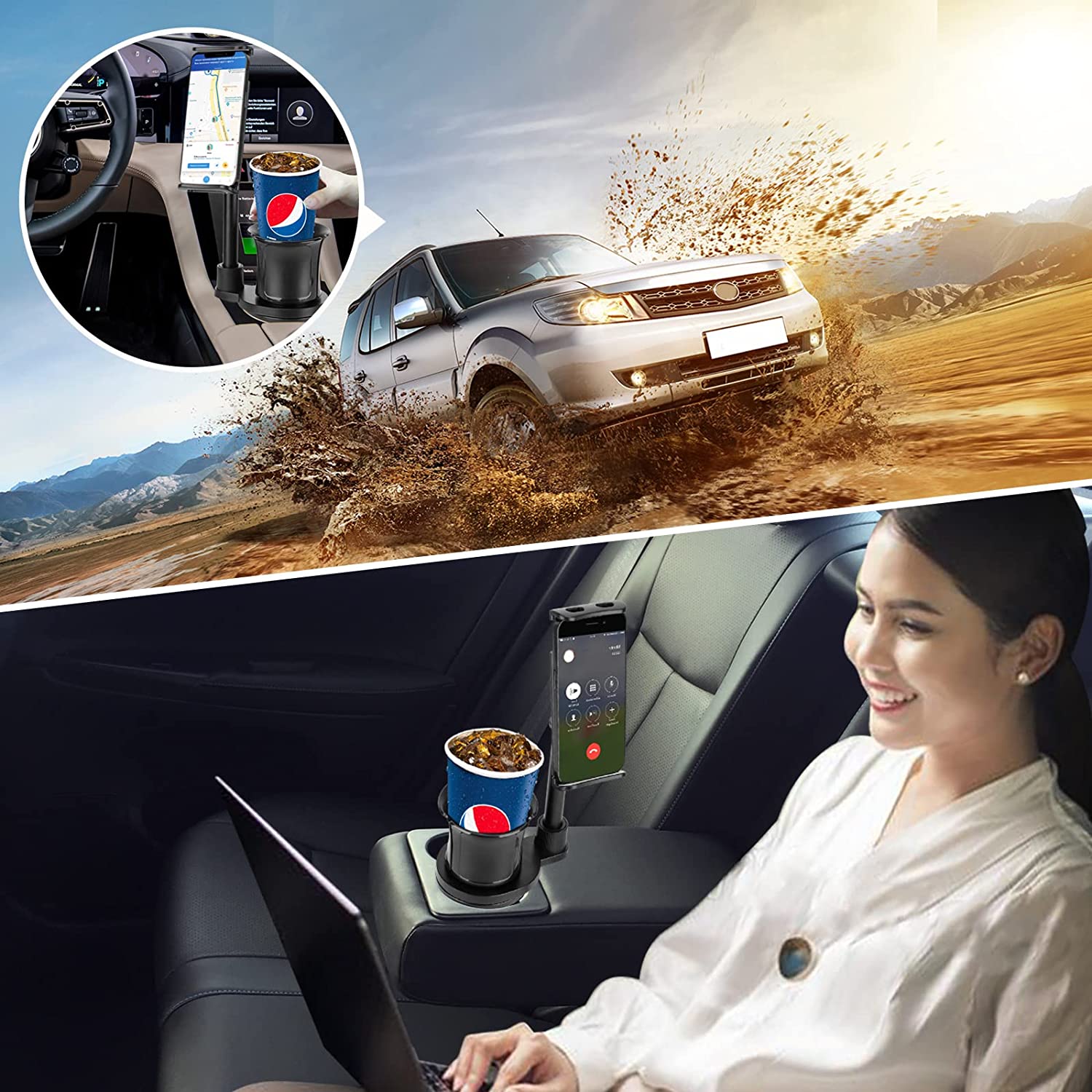Cell Phone Seat Cup Holder, Car Cup Holder Phone Mount for Car with 360° Rotation Phone Mount and Adjustable Base, Fit Truck, SUV, Automobile Compatible with iPhone & Samsung and All Smartphones