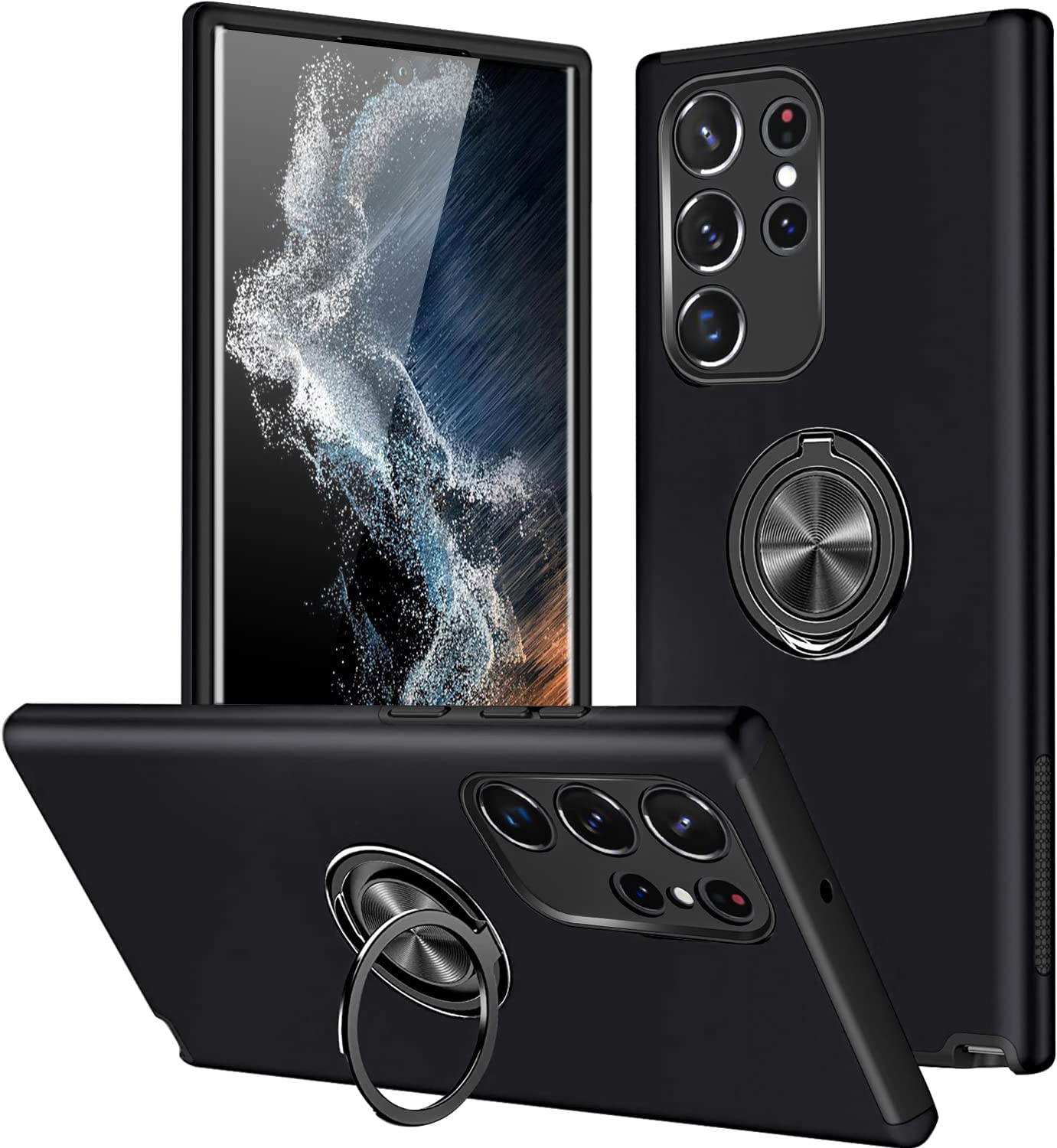 - [2023 Upgraded Kickstand]: Humanized design, 360°horizontal + 120°vertical rotation buit-in stand can lay flat on the back instead of having a large bulge where the ring and magnet are as some cases tend to do. Perfect for hands-free movie viewing. Metal ring kickstand also works greatly with magnetic car mount.