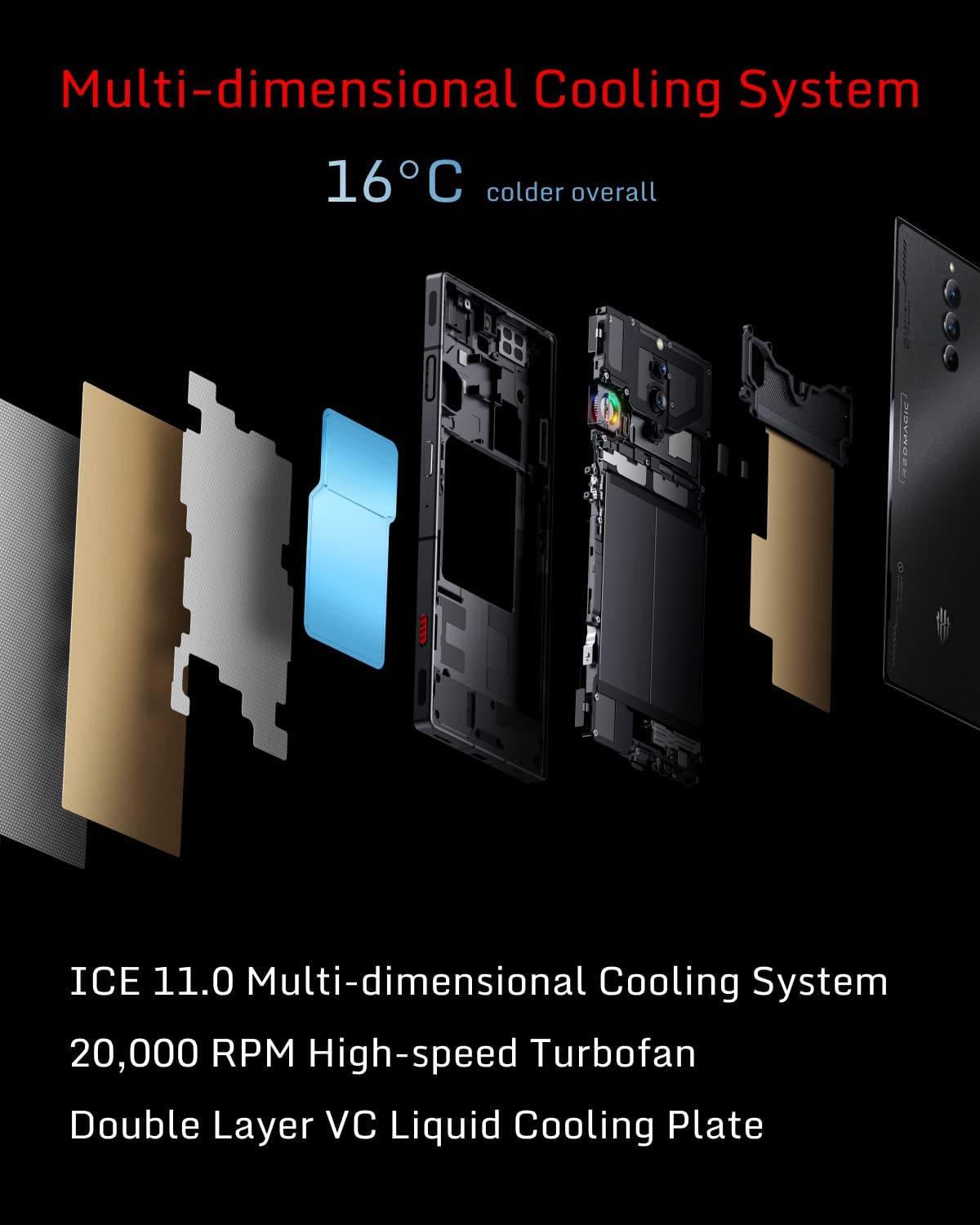 • 【Multi-Dimensional Cooling System】The Gaming Phone incorporates new aerospace-grade phase change materials (PCM) . Heat can be stored inside this material and released slowly so you feel less heat from the phone while playing, making it more comfortable to hold the phone. The High-Speed Built-In Turbofan accelerates heat dissipation and the fan noise is as quiet as a whisper.