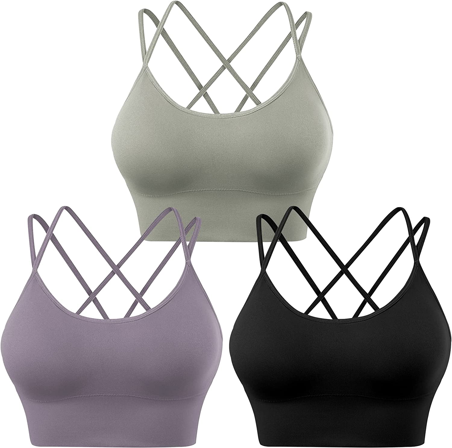 Sports Bras for Women Padded Strappy Criss Cross Cropped Bras for Yoga Workout Fitness Running Gym Low Impact Top
