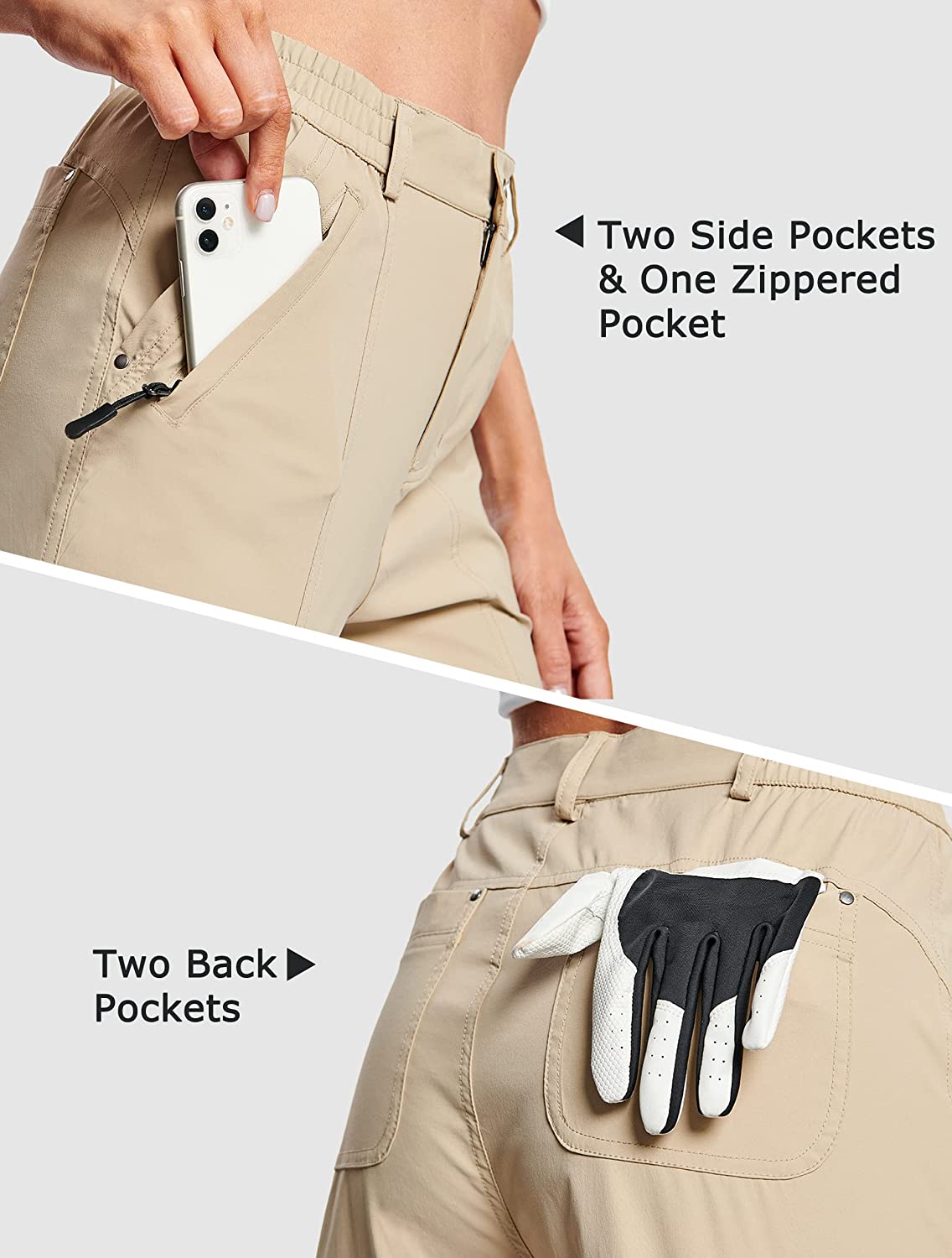 • Adjustable Features: Women's golf shorts 7 inseam with part elastic waistband with zip fly providing a better fit and a wide range of motion.