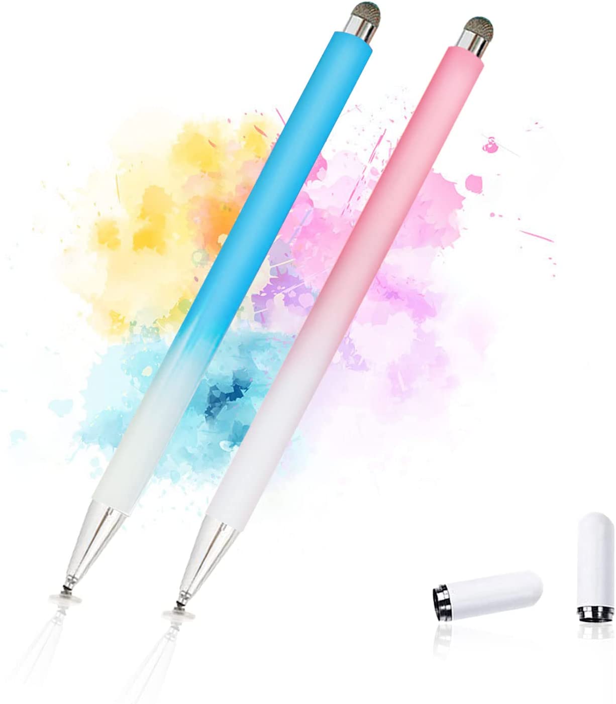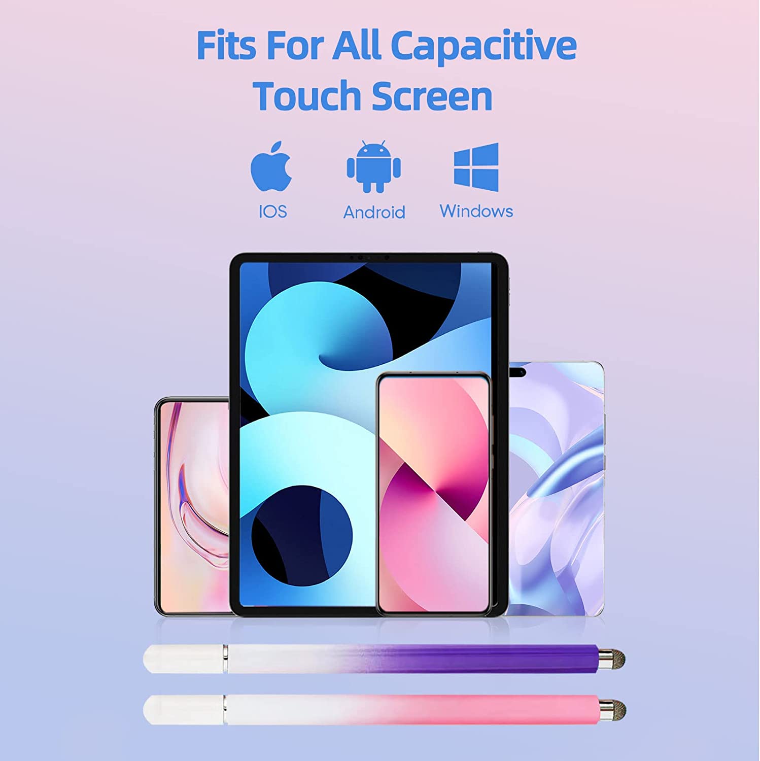 Stylus Pens for Touch Screens, 2 in 1 Stylus Pen for iPad with Precision Disc & Fiber Tip, Capacitive Stylus with Magnetic Cap, Compatible with All Touch Devices (2 Pcs) (Purple/ Pink)