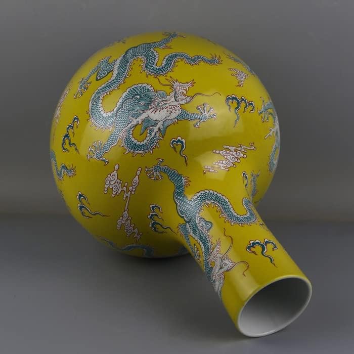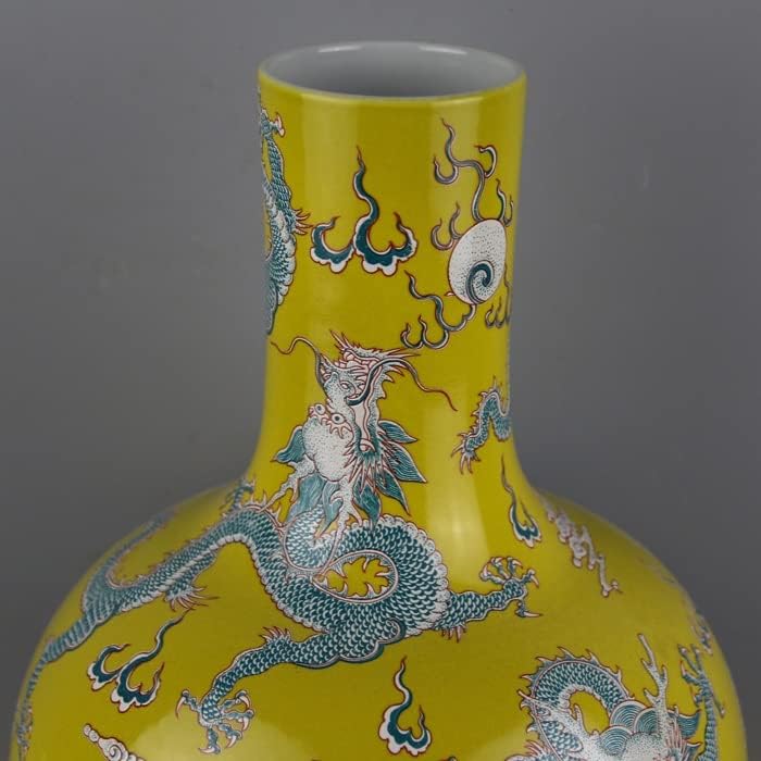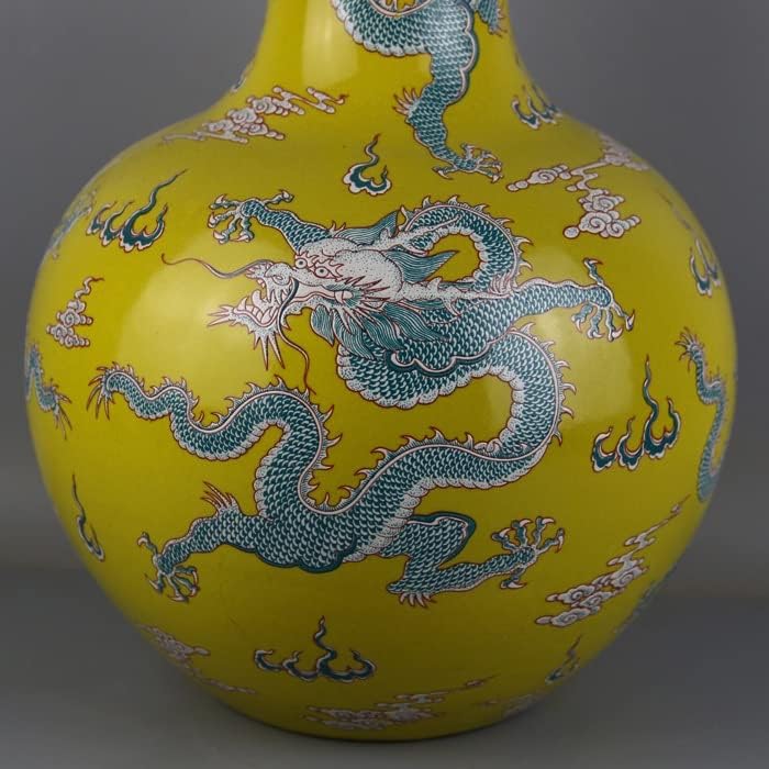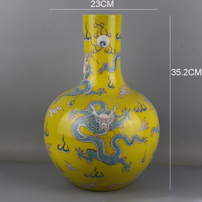 HOUKAI Antique Inscribed Yellow Dragon Vase Five Pastel Kiln Old Porcelain Ornaments Vase for Home Office Decoration