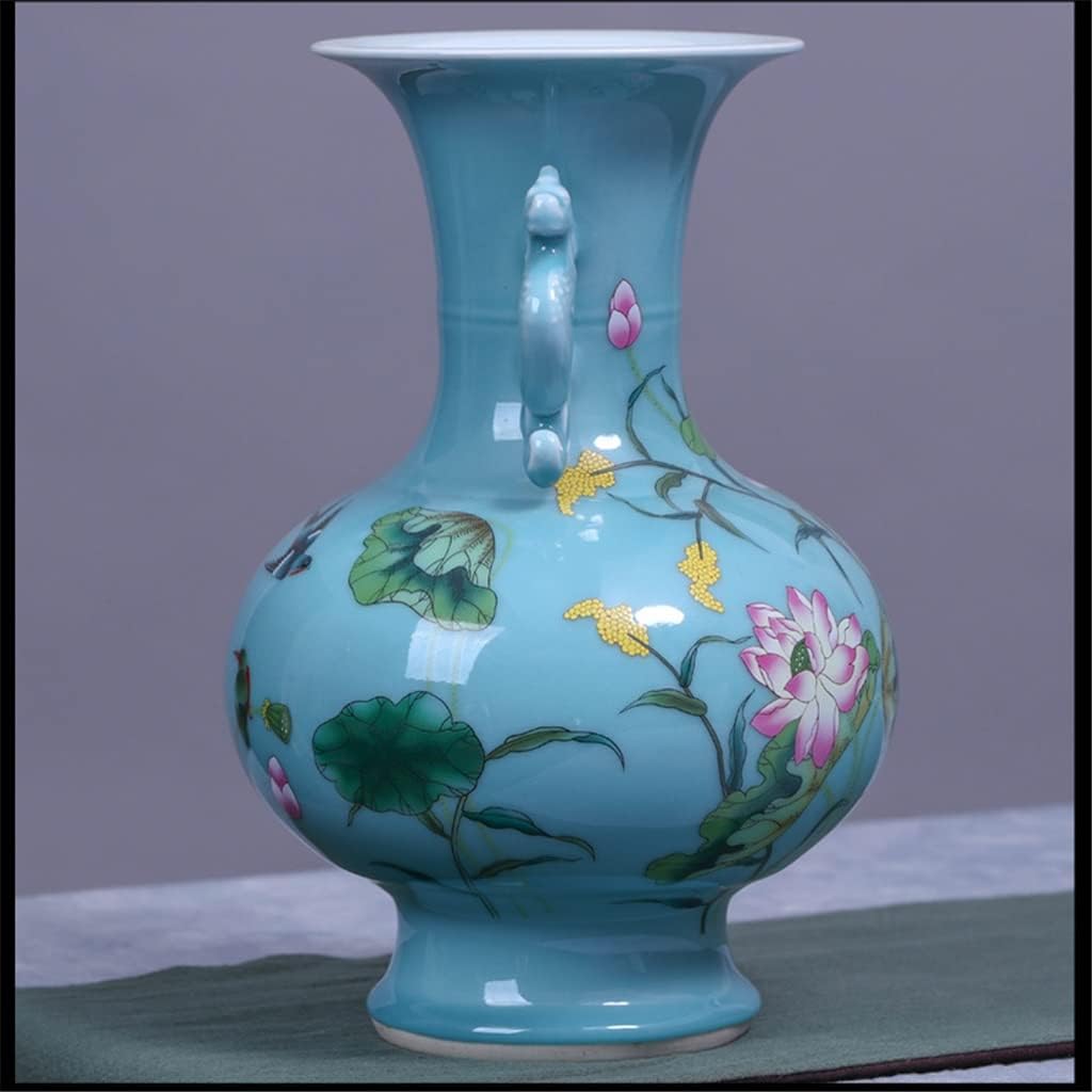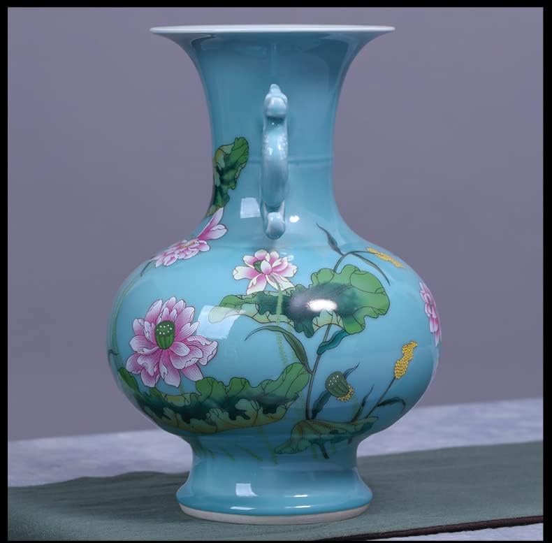 HOUKAI Antique Celadon Vase Furnishing Articles Blue Glaze Peony Flower Study Decorative Ceramic Arts and Crafts