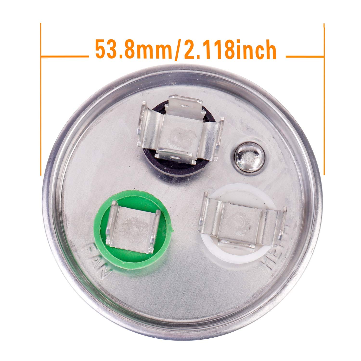 HUAREW 30+5 uF ±6% 30/5 MFD 370/440 VAC CBB65 Dual Run Start Round Capacitor for Condenser Straight Cool or Heat Pump Air Conditioner or AC Motor and Fan Starting