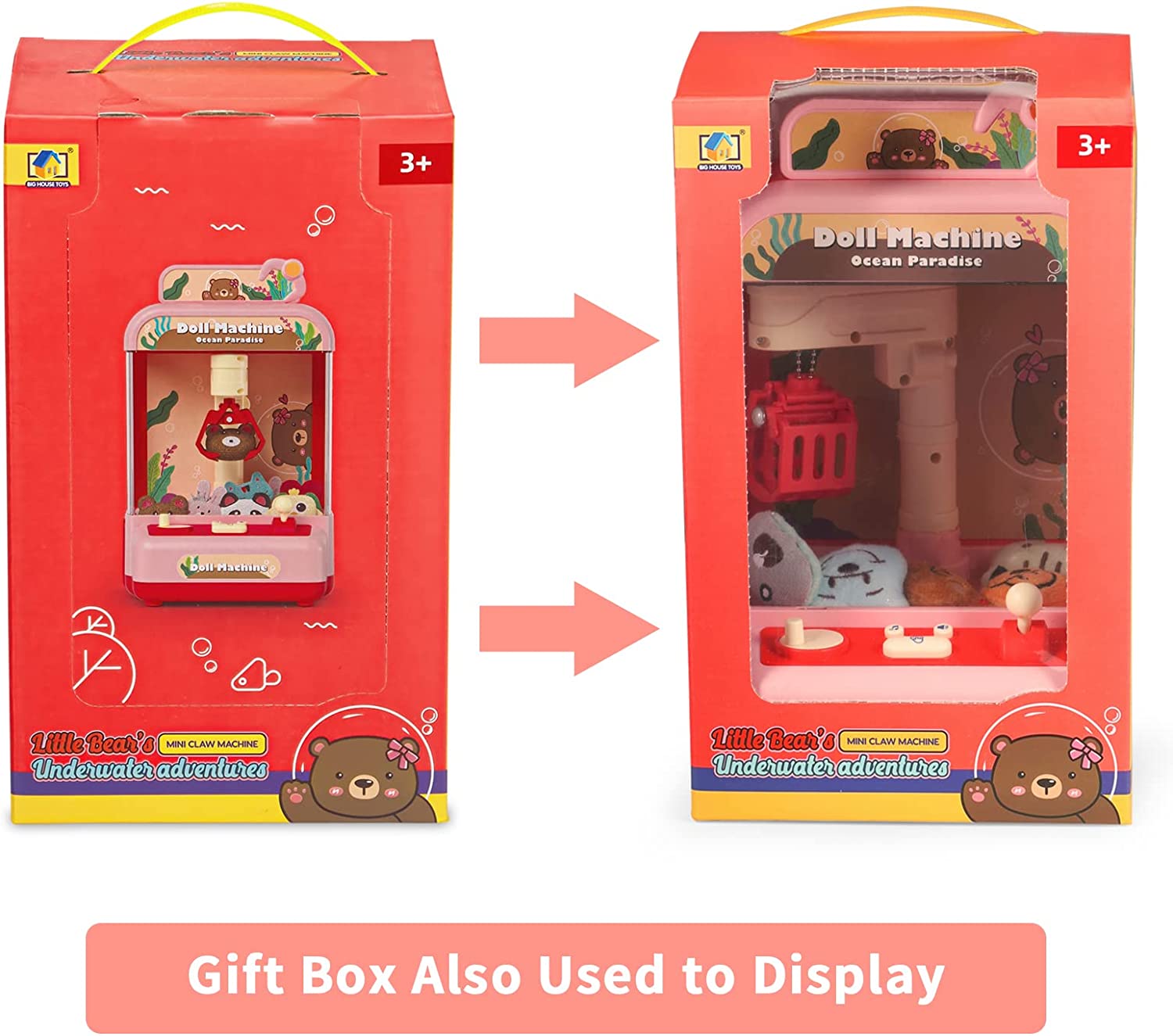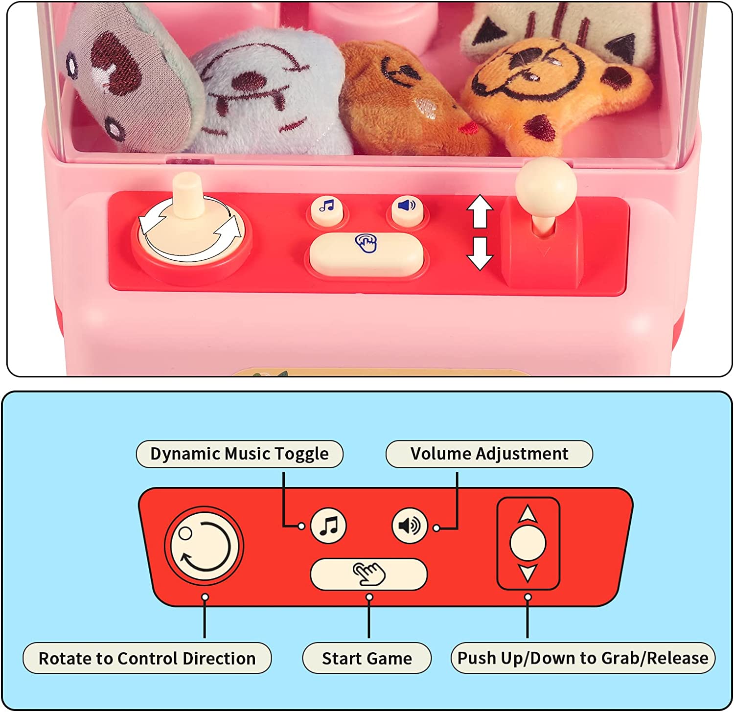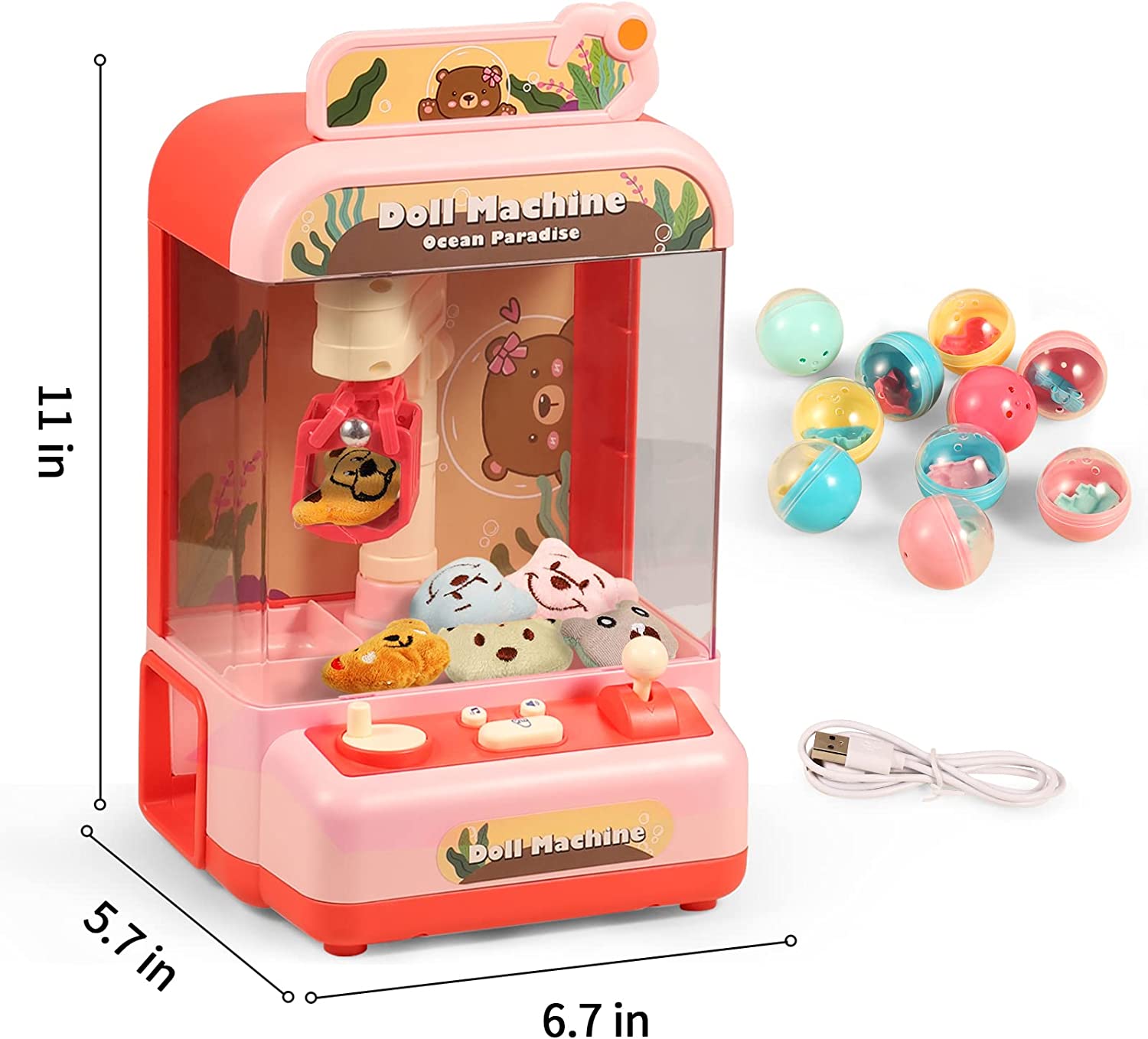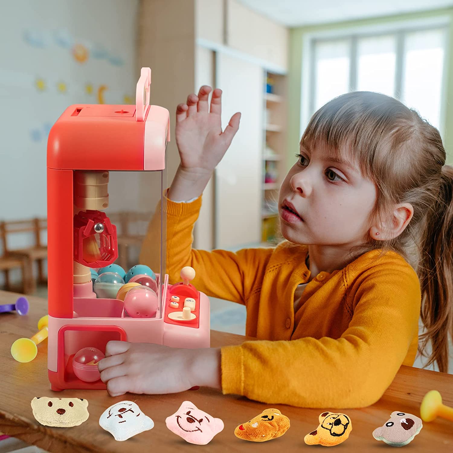 Mini Claw Machine for Kids 4-8|Electronic Arcade Game Indoor Toy with Music & Light|Candy Grabber & Prize Dispenser Vending Machine|Best Birthday Gift for 3 5 6 7 9 Year Old Girl(6 Dolls+10 Gashapons)