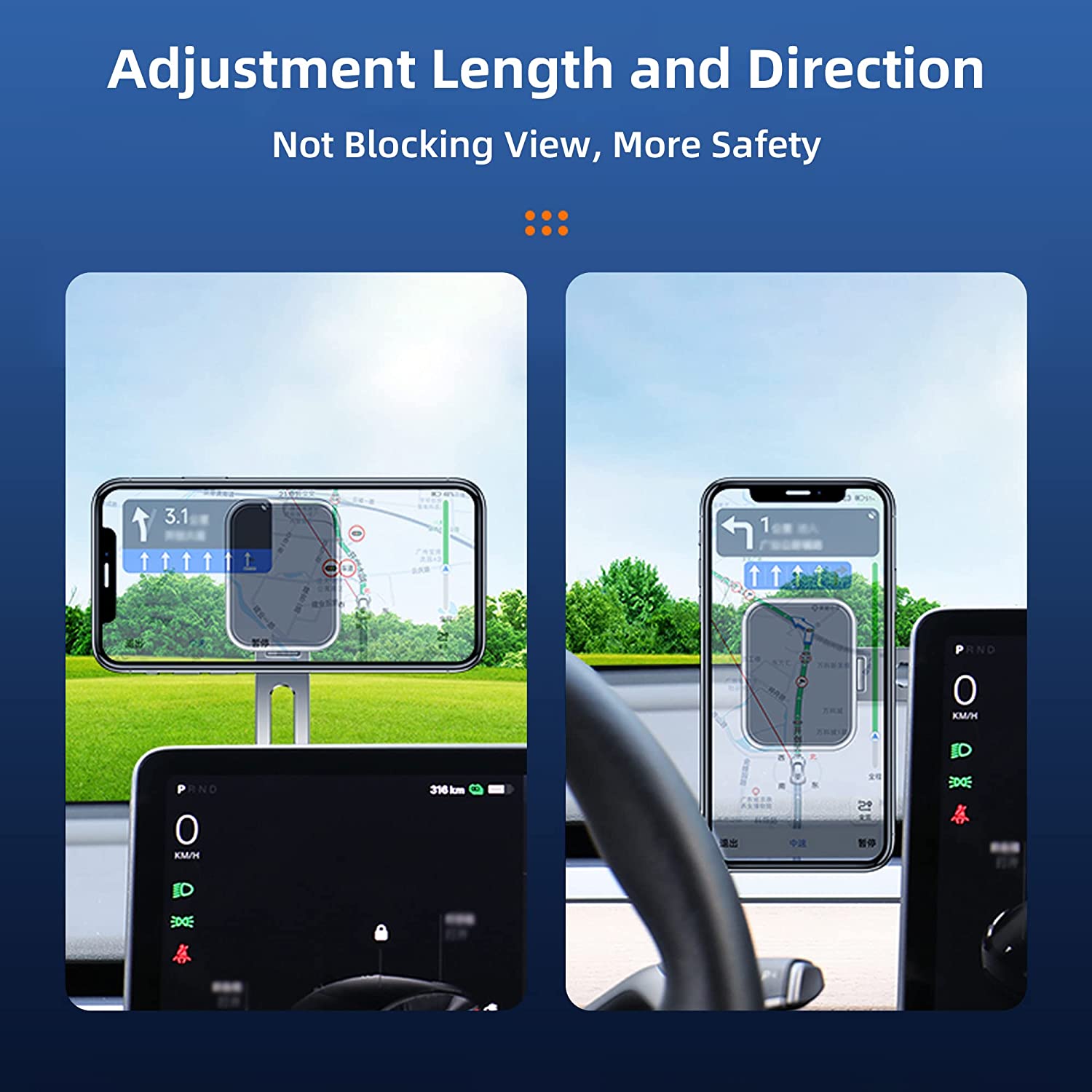• 360° Rotation & Optimal Viewing Angle --- our iPhone car magnetic mount has a 360-degree adjustable connector ball, adjusting the angle of the phone at will, and an extendable telescopic arm to provide you infinite viewing angle. The telescopic arm can be extended from 5.12”/13cm to 8.86”/22.5cm and can be up or down for optimal viewing angles. One-hand operation, easy to use. It won’t block any view when driving. Ensure the safety of driving.