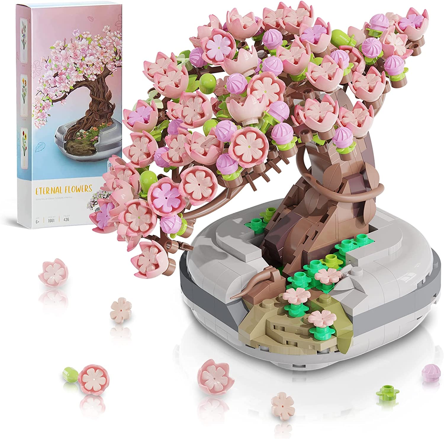• ? Wonderful decoration:The miniature sakura bonsai tree is an eternal flower composed of 426 building blocks,Placing it in your home will have you to feel the breath of nature, and your home will be vitalized because of the presence of plants blocks. Now you can not only appreciate it but also don not need to water it.