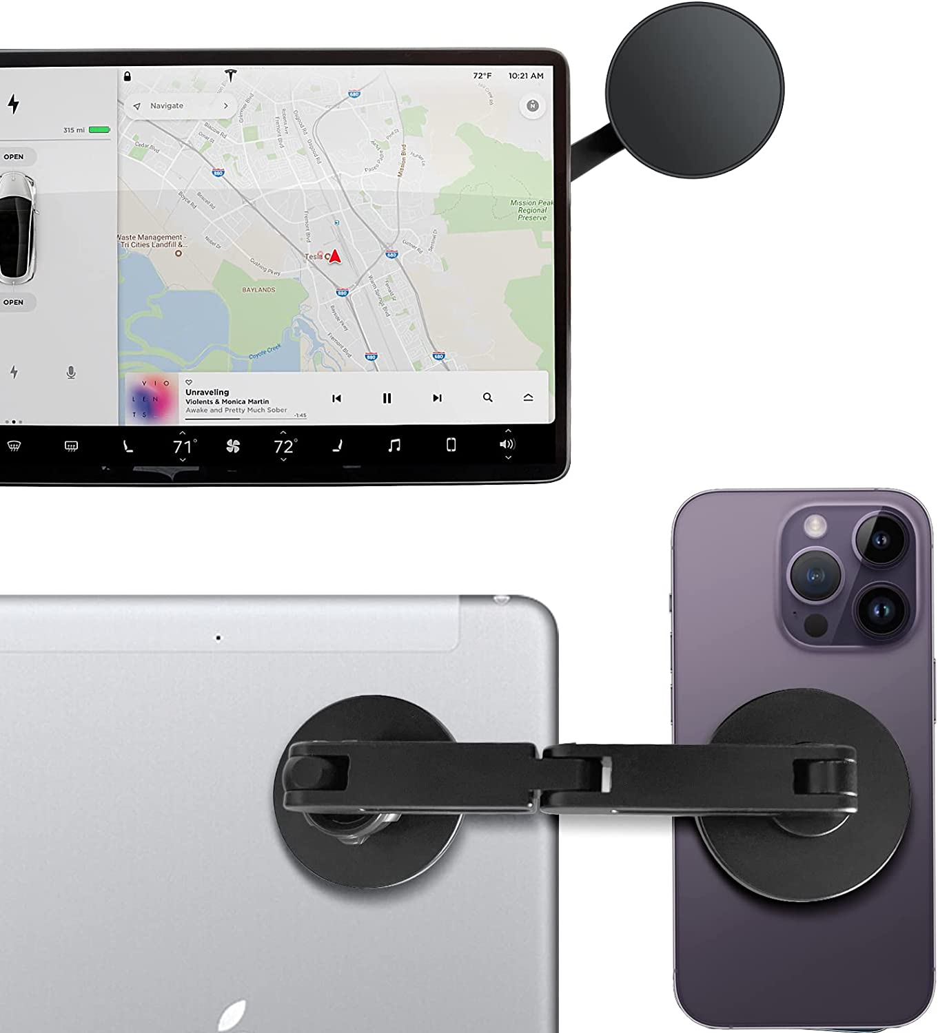 【More Mounting Options】This tesla iphone mount for tesla model 3 accessories and tesla model y accessories, Easy to rotate, Fold and hide, Horizontal and vertical adjustment, Fully adjustable design, 360-degree rotation, Suitable for your multi-angle use, And can be installed on the steering wheel/dashboard Multiple locations behind the panel/center console without obstructing the line of sight for safer navigation.
