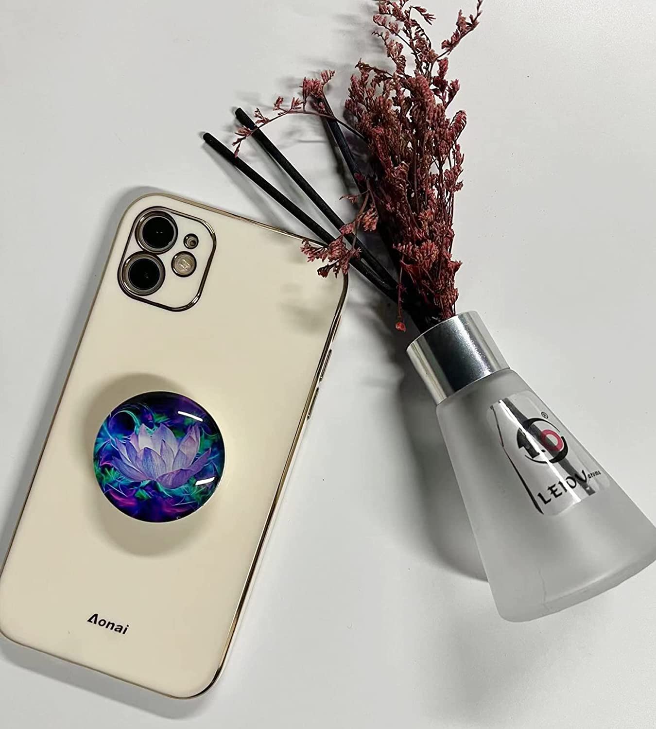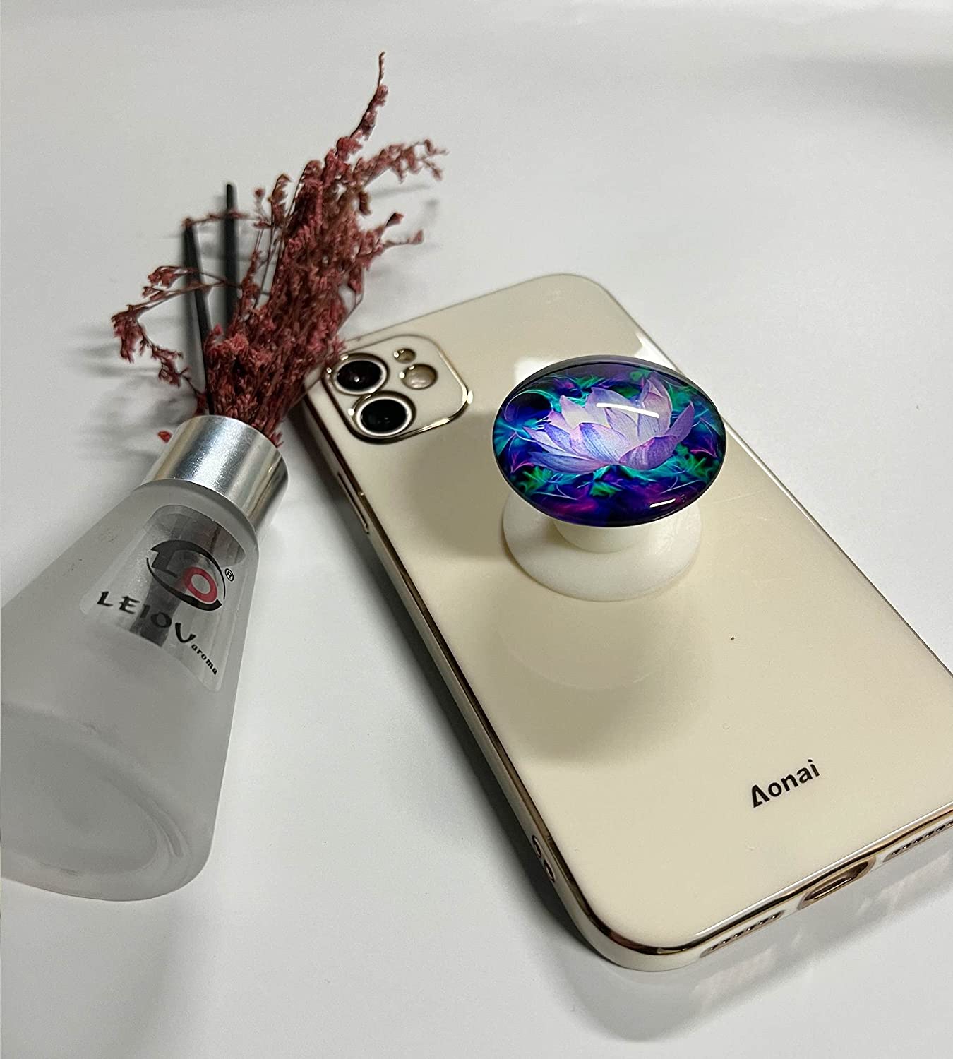 WUYULB Clear Glitter Purple Lotus Flower Design Expandible Collapsible Mobile Phone Grip Cell Phone Stand Holder for Smartphones Cellphone Accessory
