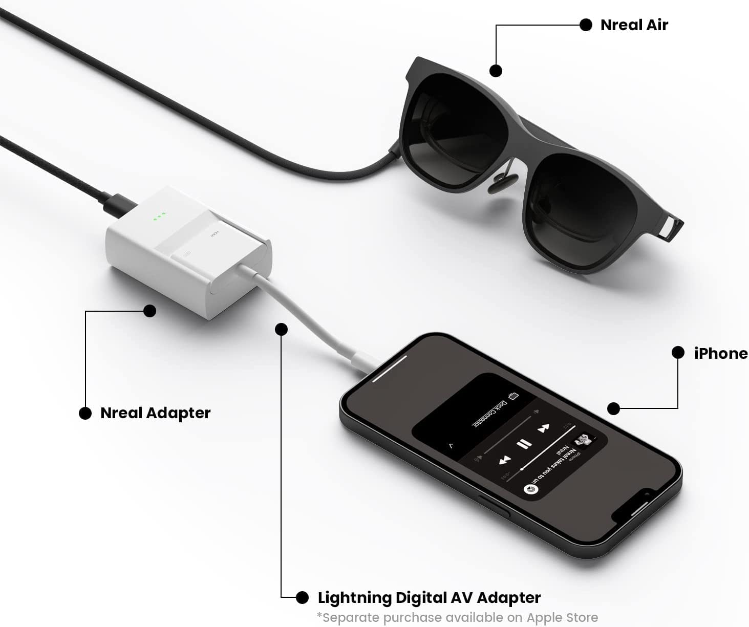 Nreal Air AR Glasses with Nreal Adapter, Compatible with iPhone and Nintendo Switch, Connect to iPhone via Lightning to HDMI Adapter, Stream and Game, AR Glasses with 130" Micro-OLED Virtual Displ