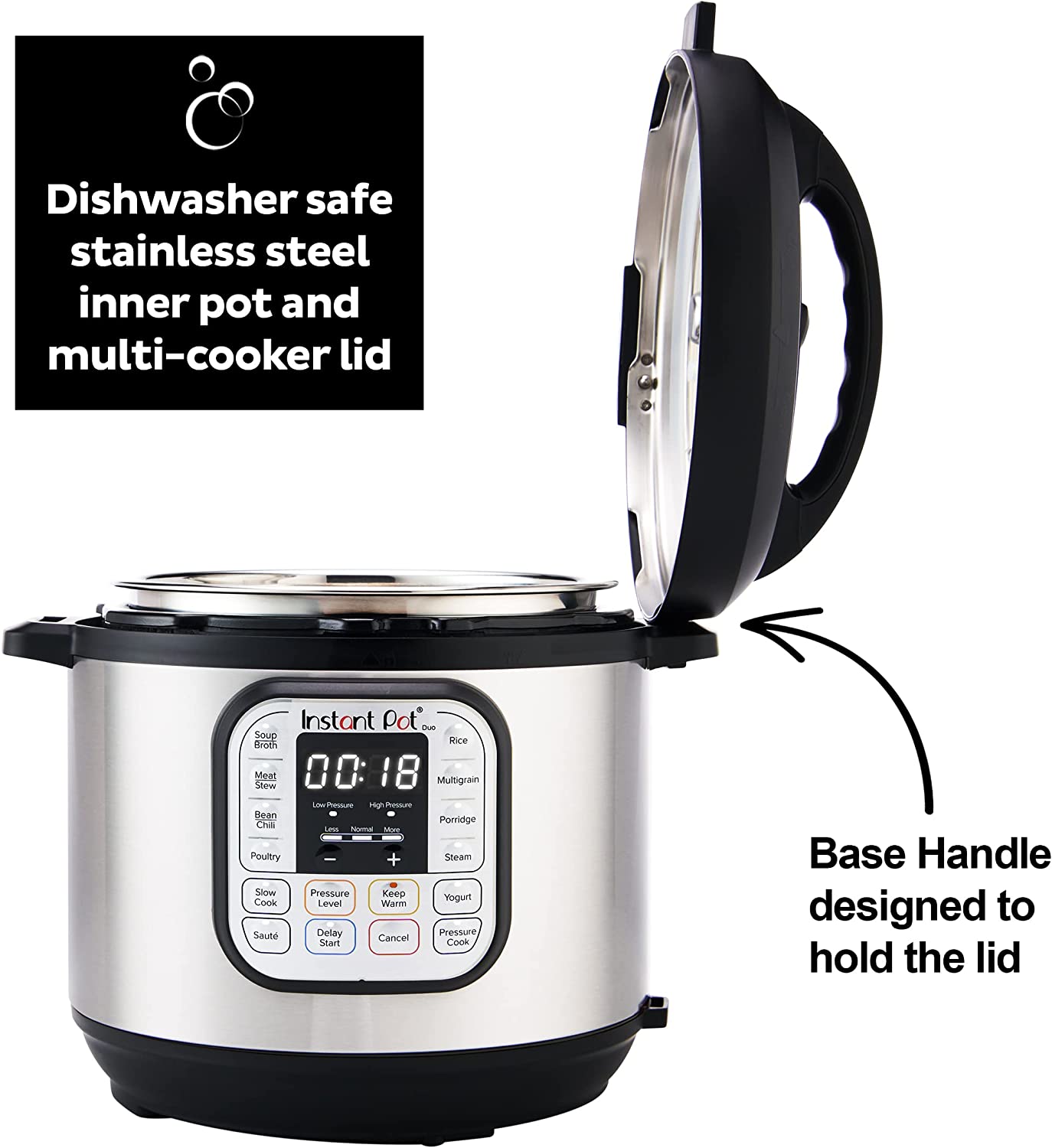 Easy to use, easy to clean, fast, versatile, and convenient, the Instant Pot® Duo™ is the one that started it all. It replaces 7 kitchen appliances: pressure cooker, slow cooker, rice cooker, steamer, sauté pan, yogurt maker & warmer. With 13 built-in smart programs, cook your favorite dishes with the press of a button. The tri-ply, stainless steel inner pot offers quick, even heating performance. Redefine cooking and enjoy quick and easy meals anywhere, any time. The Instant Pot Duo offers the quality, convenience and versatility you’ve come to expect from Instant – discover amazing. Worry-free cooking Smart Program timed cooking pre-sets let you “set it and forget it,” freeing you to do other things while the Duo cooks your dinner safely and quickly, with minimal mess and easy clean up.