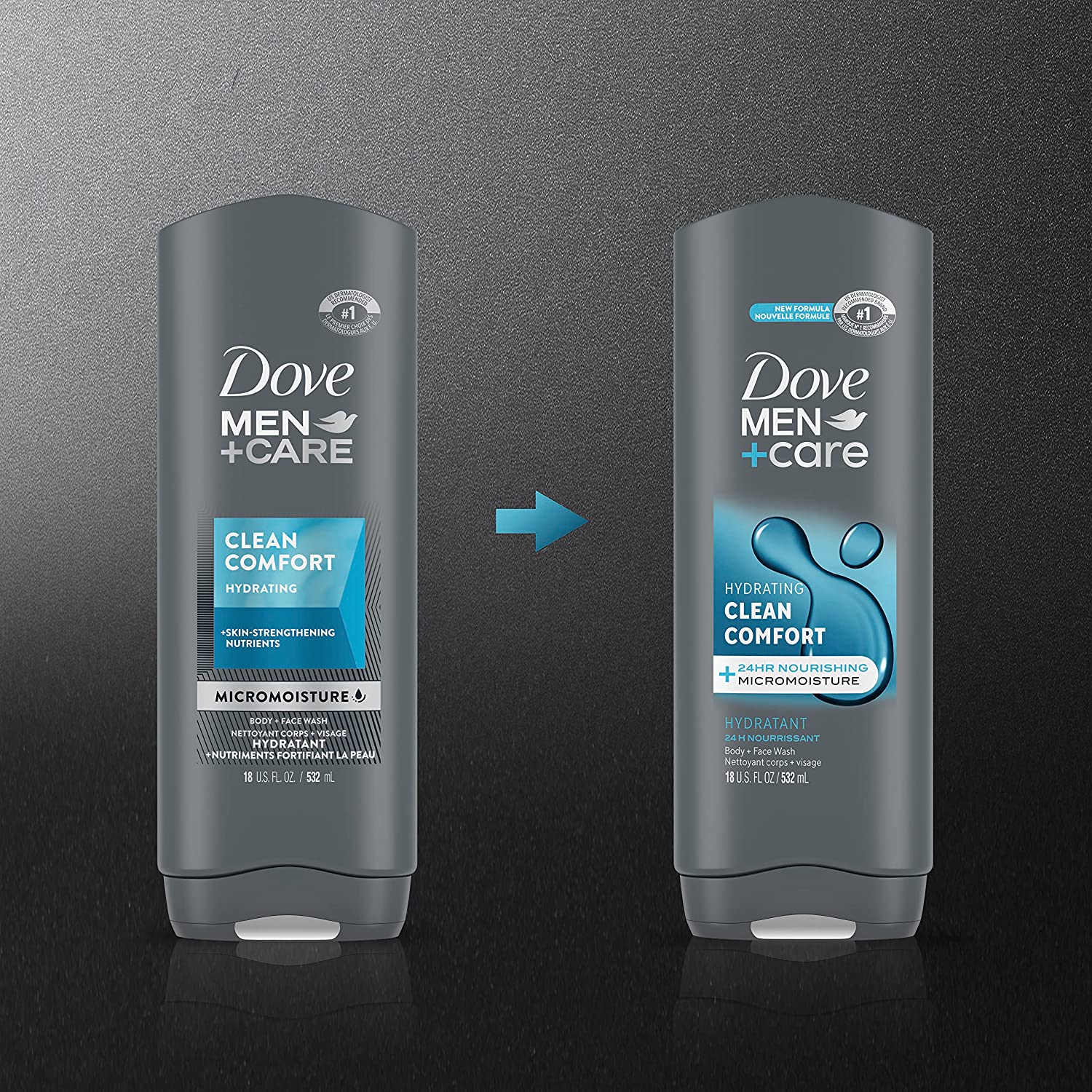 • Dove Men+Care Clean Comfort Body Wash is developed specifically for men's skin