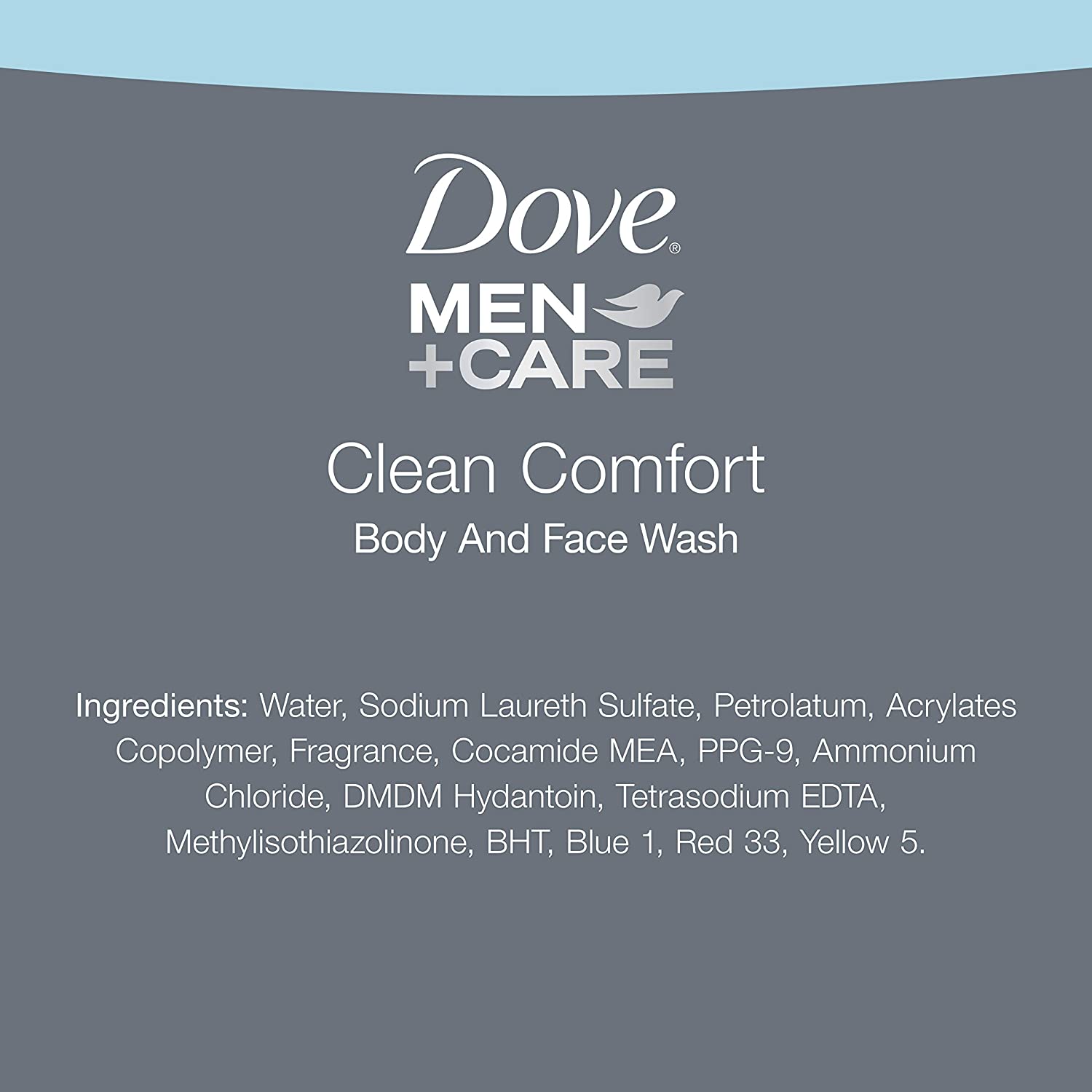 To start the day on a fresh note, add Dove Men+Care Clean Comfort Body and Face Wash to your shower routine. This crisp, refreshing body men's body wash with MICROMOISTURE technology helps keep skin hydrated, healthy looking and strong, and is clinically proven to fight skin dryness better than regular men's body wash. The highly effective cleansing formula rinses off easily to deliver a refreshing clean and total skin comfort, and this #1 Dermatologist recommended brand body wash can be used both as a body wash and a face wash. Delivering total skin comfort, this men's body wash rinses away cleanly without leaving any residue behind so you get a refreshing clean. Uniquely formulated for men with MicroMoisture technology that activates when lathering, Dove Men+Care Clean Comfort Body Wash helps to lock in your skin's natural moisture and leave it feeling fresh and hydrated. This shower gel for men is noncomedogenic, hypoallergenic, and gentle enough to use on your face. The formula leaves you with a clean body and a crisp, refreshing scent. Now you can start your day with skin that feels healthy, protected, clean, and refreshed with this powerful and effective body wash for men.