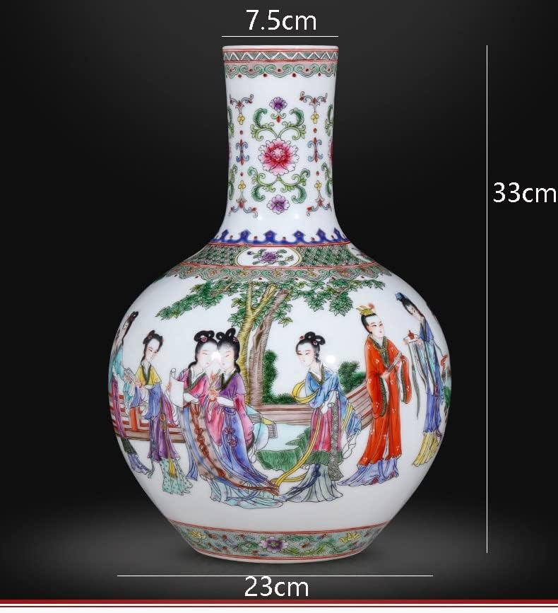 ZSEDP Jingdezhen Porcelain Hand Painted Figure Vase Flower Arrangement Antique Chinese Living Room Home Decoration