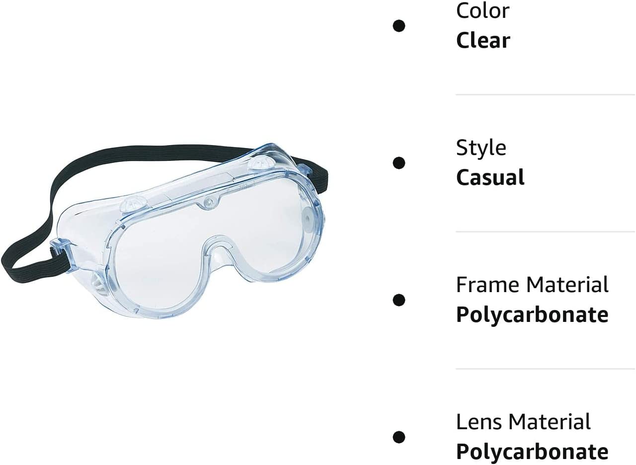Let's face it–some jobs are messy, but with the help of the 3M Chemical Splash/Impact Goggles you can protect your eyes. Equipped with a tough, polycarbonate lens and soft, pliable shroud, these safety goggles help protect against certain particles and liquids while providing a comfortable fit that conforms to your face. The large size also accommodates some personal eyewear. Strategic vents help ensure protection from liquids while allowing airflow. The stretchy, adjustable strap provides a secure, personalized fit every time. So whether you're spray painting an accent wall or ripping a plank, rely on the powerful protection of 3M Chemical Splash/Impact Goggles.