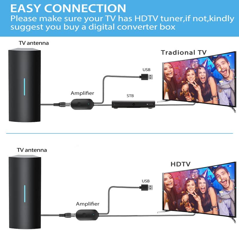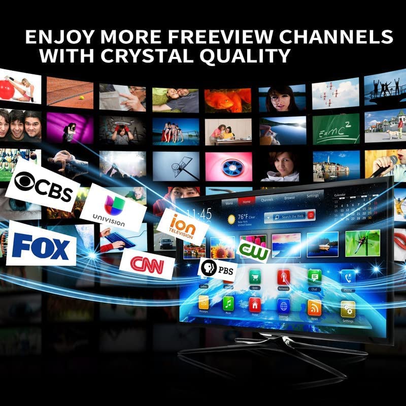 - 【No More TV Bills】Say goodbye to the bill!Enjoy hundreds of 0 COST channels with no pixelation, Brings scenes to life!We make sure you can receive get ABC, CBS, NBC, PBC, Fox etc, and access to the news, broadcast, sitcoms, kids and sports programs with our amplified tv antenna. Support Format: 720p, 4K,1080pi, 1080p/ATSC. Reminder: Re-scan channels after moving the antenna