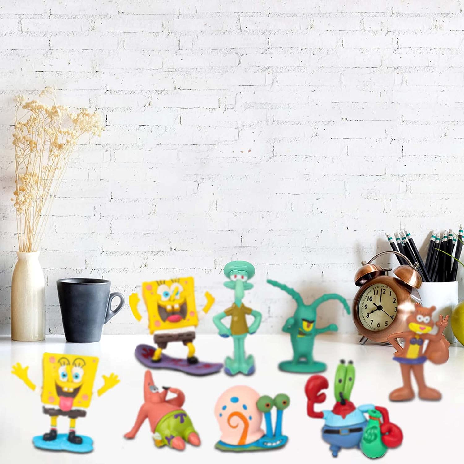 MIYORA 8 Pcs Yellow Bob Cartoon Toys Figures Set - Squarepants Mini Game Figures Set, 2 Inch Birthday Cake Toppers,Great and Party Decorations for Kids