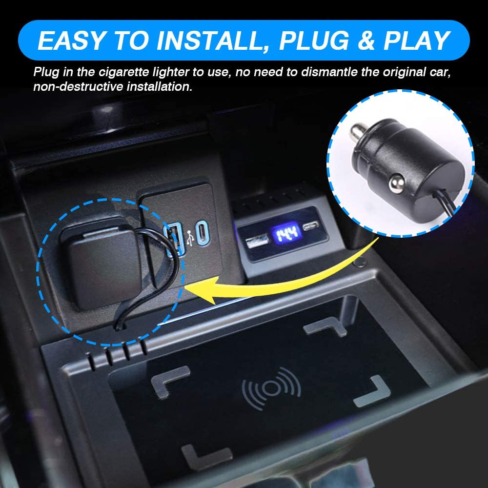 36W USB Port —— Install our wireless charger you not only own a wireless charger but also get 1 PD fast charging port, 1 QC3.0 fast charging port.2 charging ports and the wireless phone charger pad will save you from the messing with cables and cases while driving,provide the best safety protection for you.