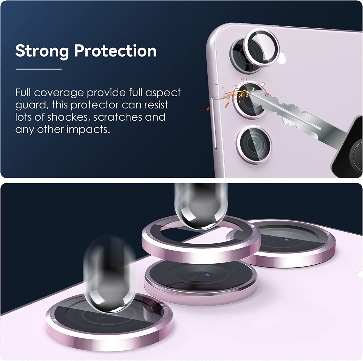 • 【Daily Protection】The dual material combination of aluminum alloy and tempered glass material makes your phone lens stronger and more stylish. And protect your lens from scratches from keys and other sharp objects.
