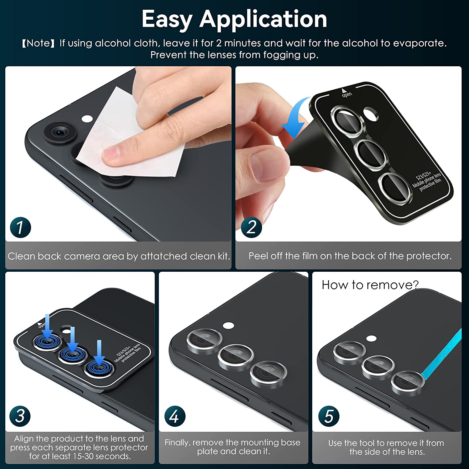 • 【Easy to Install】 We have mounting plates and removal tools for the Samsung Galaxy S23 / S23+ camera lens protector. Simply follow the installation steps for a bubble-free installation. Even if you have no installation experience, you can do it easily. (Note: After cleaning, wait for a few alcohols to evaporate before installing. Otherwise it will fog up)