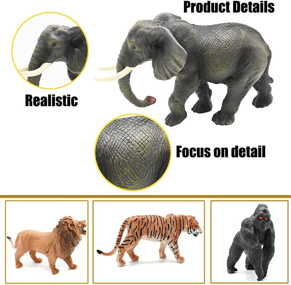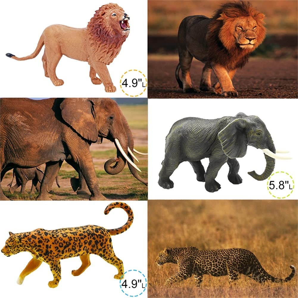 • LEARNING EDUCATIONAL TOY: They're also the great pretend play props, enhancing vocabulary, language skills, creative thinking and active cognitive learning through imaginative play. Realistic detailed safari animals are easy for toddler to distinguish, it's the good learning resource. Also the animal playset can also make away your kids from electronics which can protect their eyesight.