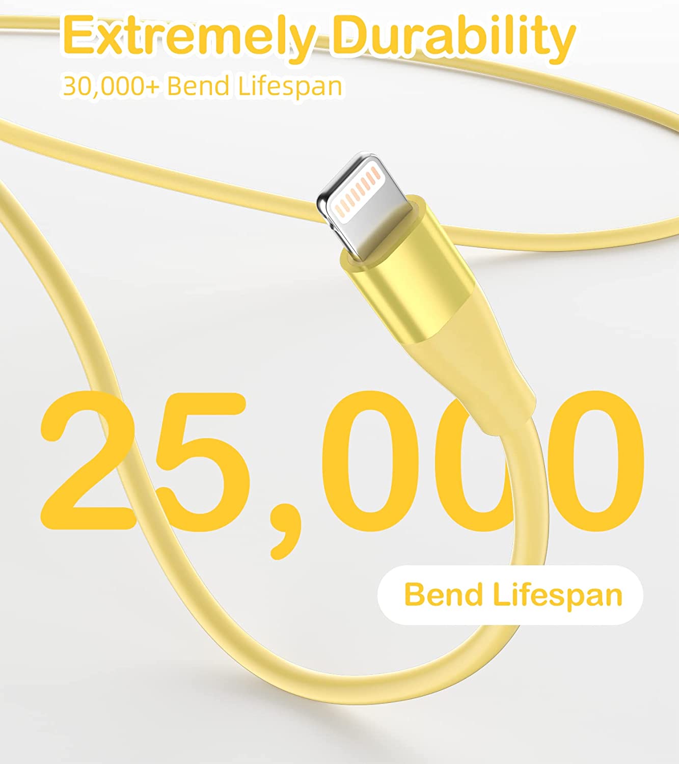 ?【Superior Durable and Strong】High-quality TPE material makes this cable more durable and stronger than ordinary iPhone charger cables, while being flexible and tangle-free. It is tested for up 30,000+ bends, making it more durable. Withstand all kinds of daily connection needs and long-term use.