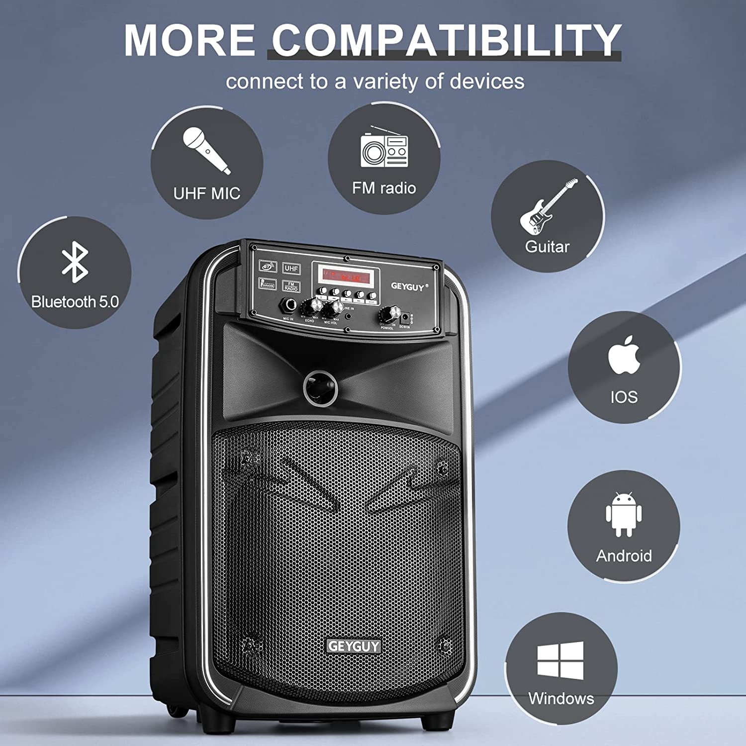 Yes, the electric guitar/electric instruments can connect to our PA speaker via MIC IN port. For acoustic guitars, you can buy our GTSK8-2 double microphone set. One of the UHF microphones can be used as a pickup with very high sound quality reproduction.