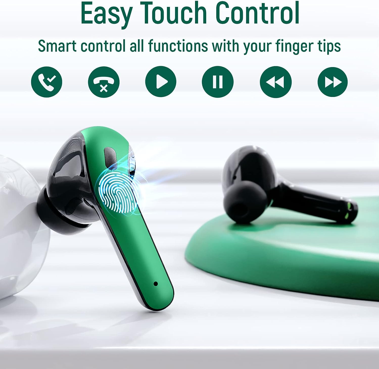 Wireless Earbuds Bluetooth Headphones 60H Playtime Ear Buds with LED Power Display Charging Case Earphones in-Ear Earbud with Microphone for Android Cell Phone Gaming Computer Laptop Sport Green