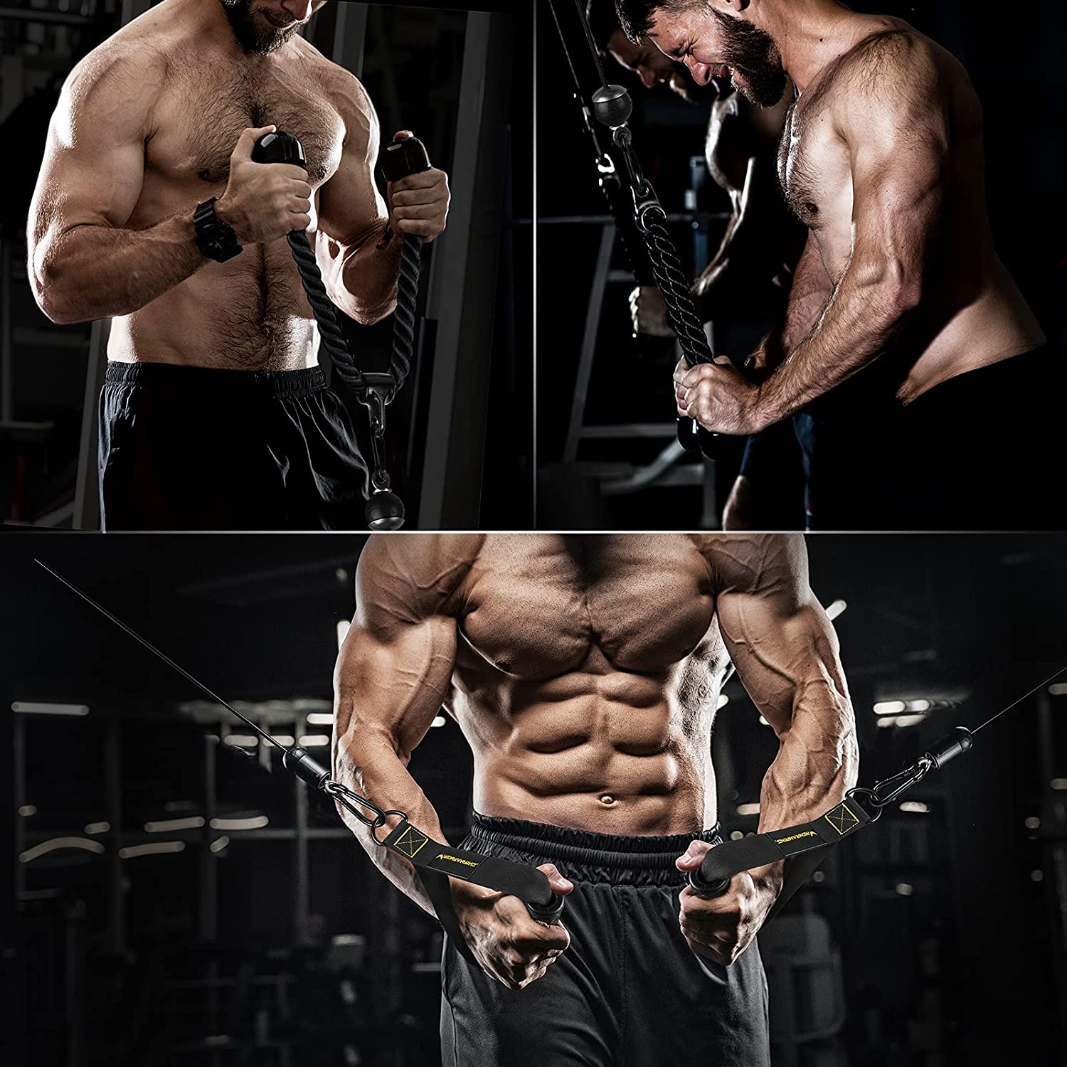 - ?【Three Deteachable Handles】We provide you with 3 detachable handles, allowing you to freely change the gym attachment you want; ① Tricep rope: used for triceps push down, Biceps flexion and multi-row movements. ②Honeycomb type handles: can exercise chest muscles by chest expansion and clamping, better non-slip to help you exercise more effectively. ③ LAT pull bar: used for pull-up/pull-down training, exercise arm wrist and forearm strength.