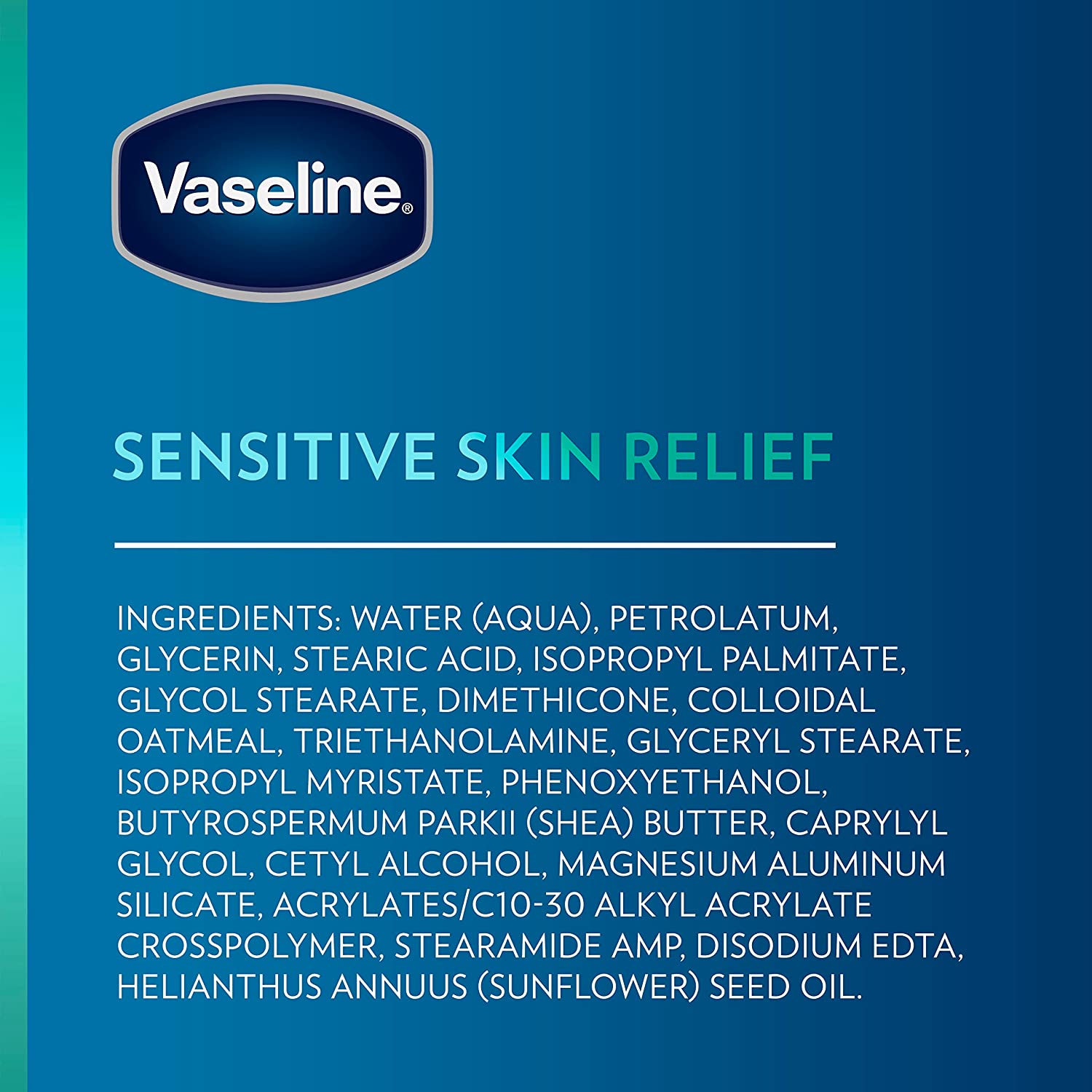Vaseline Intensive Care Sensitive Skin Relief Body Lotion was co-created with dermatologists to help soothe sensitive, dry, and irritated skin from first use. This body moisturizer is formulated with a combination of Colloidal Oatmeal and Ultra-Hydrating Lipids, giving you long-lasting and soothing moisture .