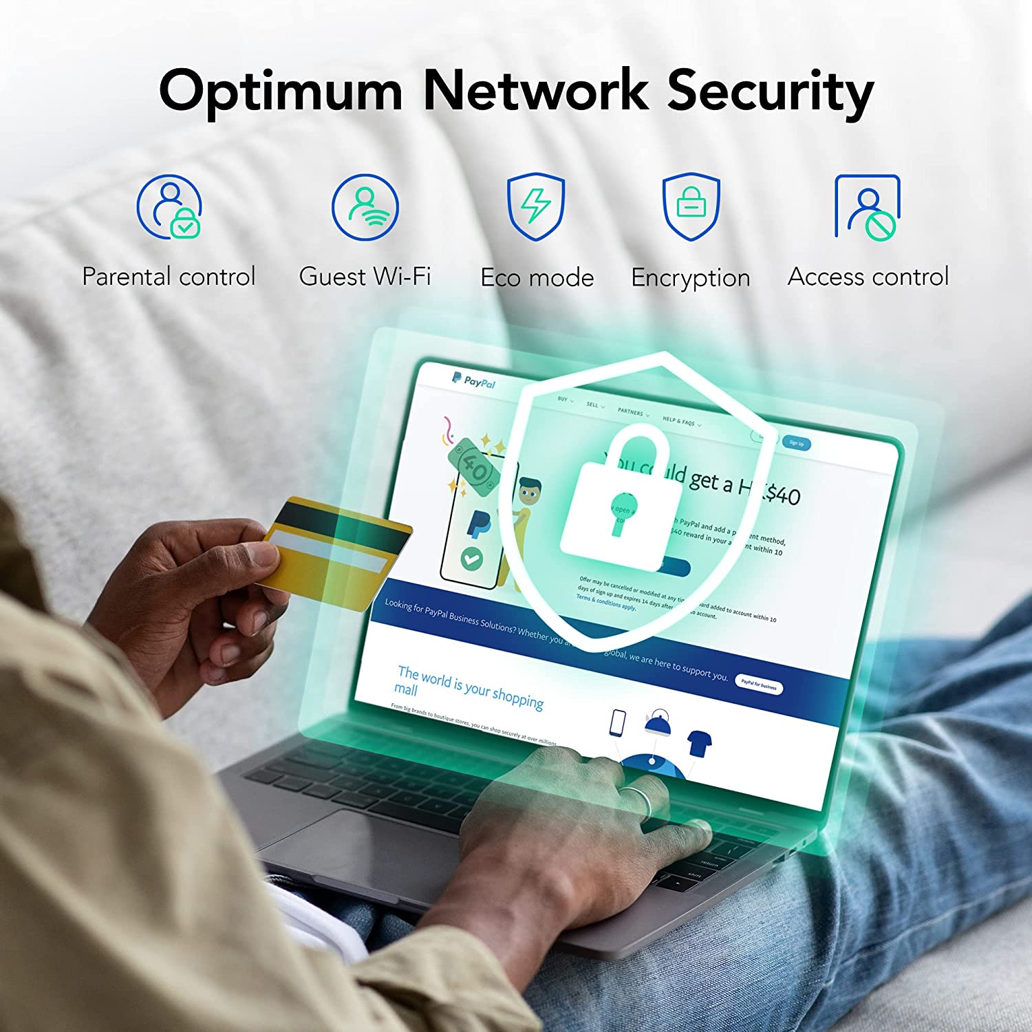 - Multi-user-friendly design: This Wi-Fi 6 Wireless Router supports the 802.11ax Wi-Fi standard, allowing many users to share channels and connect up to 128 devices, increasing network capacity and efficiency in congested areas. Easily address the party's multi-device dilemma.