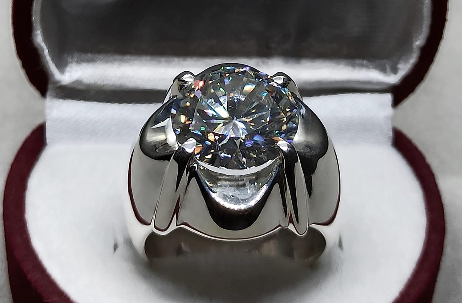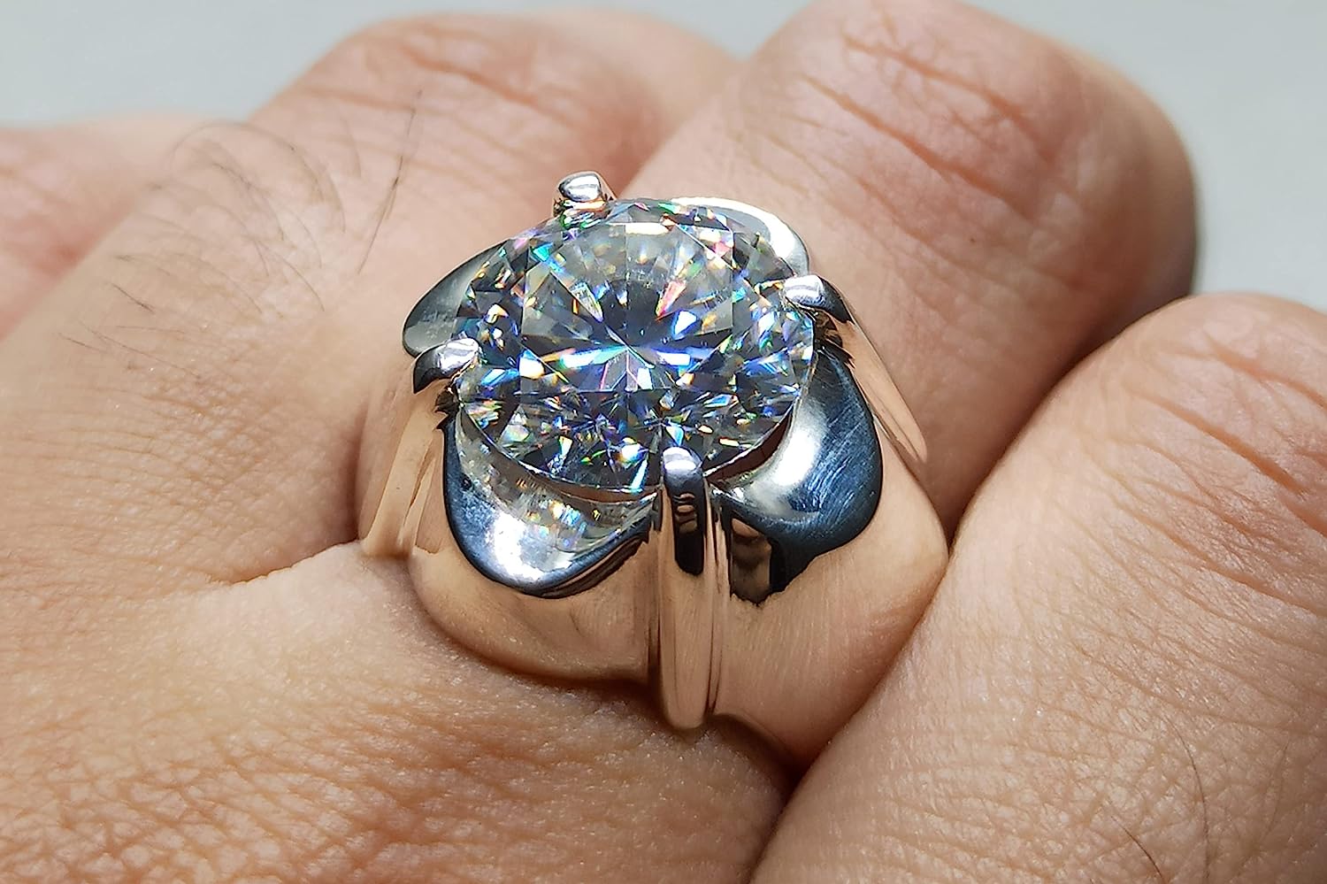 Rare 7 Carat Big Diamond Cut Fire Moissanite Mens Heavy Sterling Silver 925 Handmade Ring Gift for Him Anniversary Ring (9)