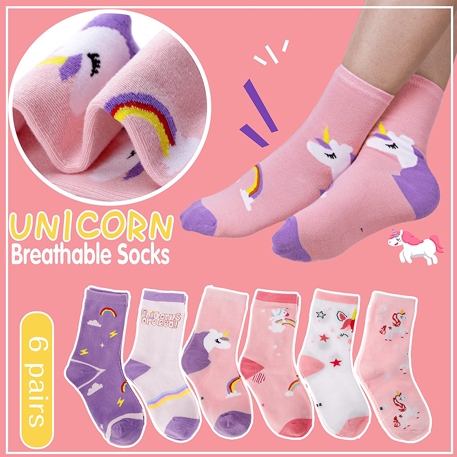 WELSOX Unicorn Socks Gifts for Girls kids Cute Animal Fun Crew Fashion Funny Novelty Soft Cotton Socks 6 Pairs