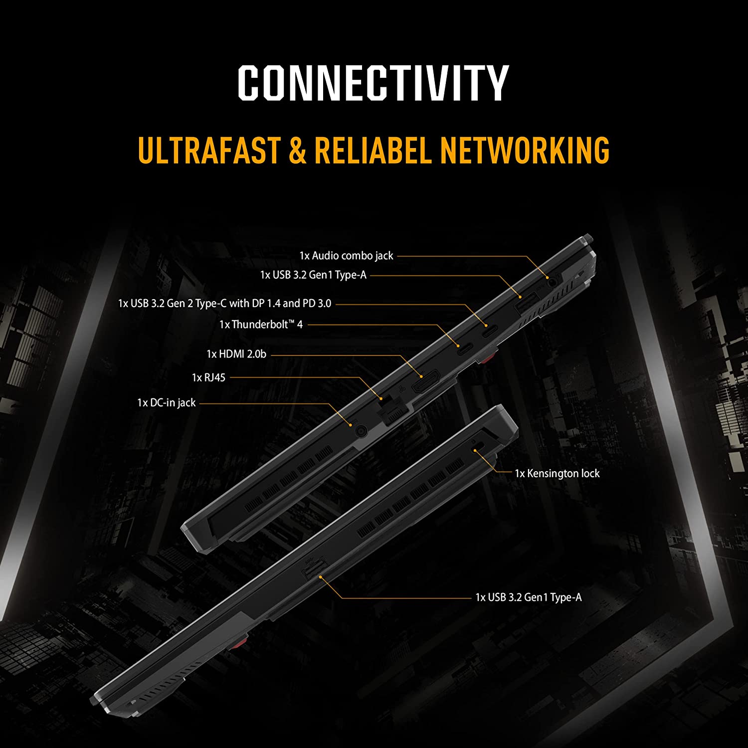 • FULL CONNECTIVITY - Wi-Fi 6, Bluetooth 5.2, 1x Thunderbolt 4, 1x USB 3.2 Type-C (Gen2), 2x USB 3.2 Type-A (Gen1), 1x HDMI 2.0b, 1x 3.5mm Audio Jack, 1x LAN