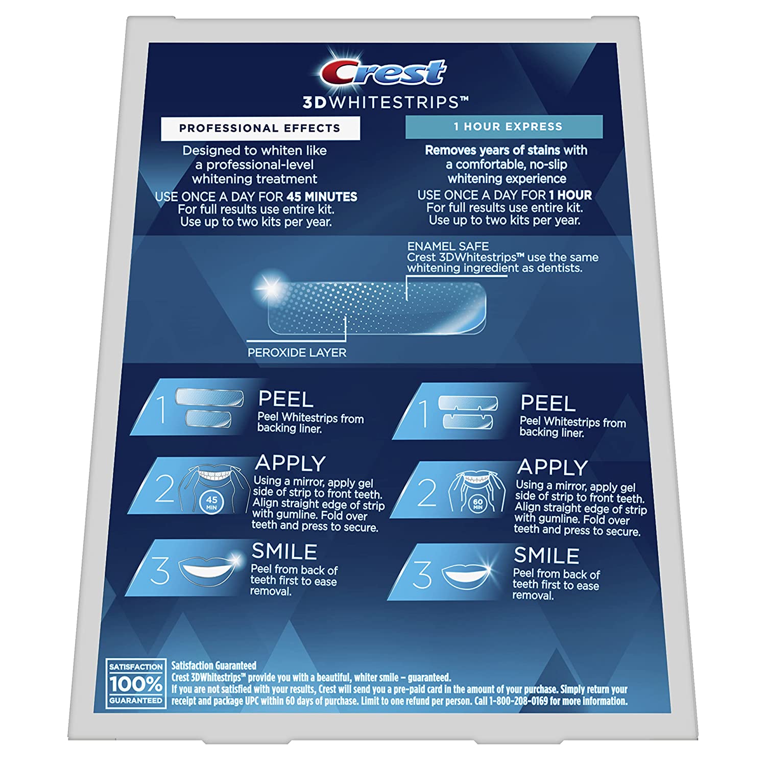 Want to your whiten teeth at home? Crest 3DWhitestrips Professional Effects Plus offering that features 20 Professional Effects treatments and 4 bonus 1 Hour Express treatment and is designed to whiten like a professional-level teeth whitening treatment at-home. The Advanced Seal Technology's comfortable, no-slip grip means the strips stay put until you take them off, allowing you to talk and even drink water while whitening your teeth. Made by the #1 dentist-recommended at-home teeth whitening brand, Crest 3DWhitestrips Professional Effects Plus will give you a 100% noticeably whiter smile, guaranteed. Using the same hydrogen peroxide whitening ingredient as dentists, this enamel safe at-home teeth whitening kit will make your teeth 23 levels whiter. Simply apply 20 treatments of Crest 3DWhitestrips Professional Effects Plus for 45 minutes a day and 4 treatments of 1 Hour Express for 60 minutes. This pack includes 48 teeth whitening strips, 24 for your top teeth and 24 for your bottom teeth, to be used over the course of 24 days.