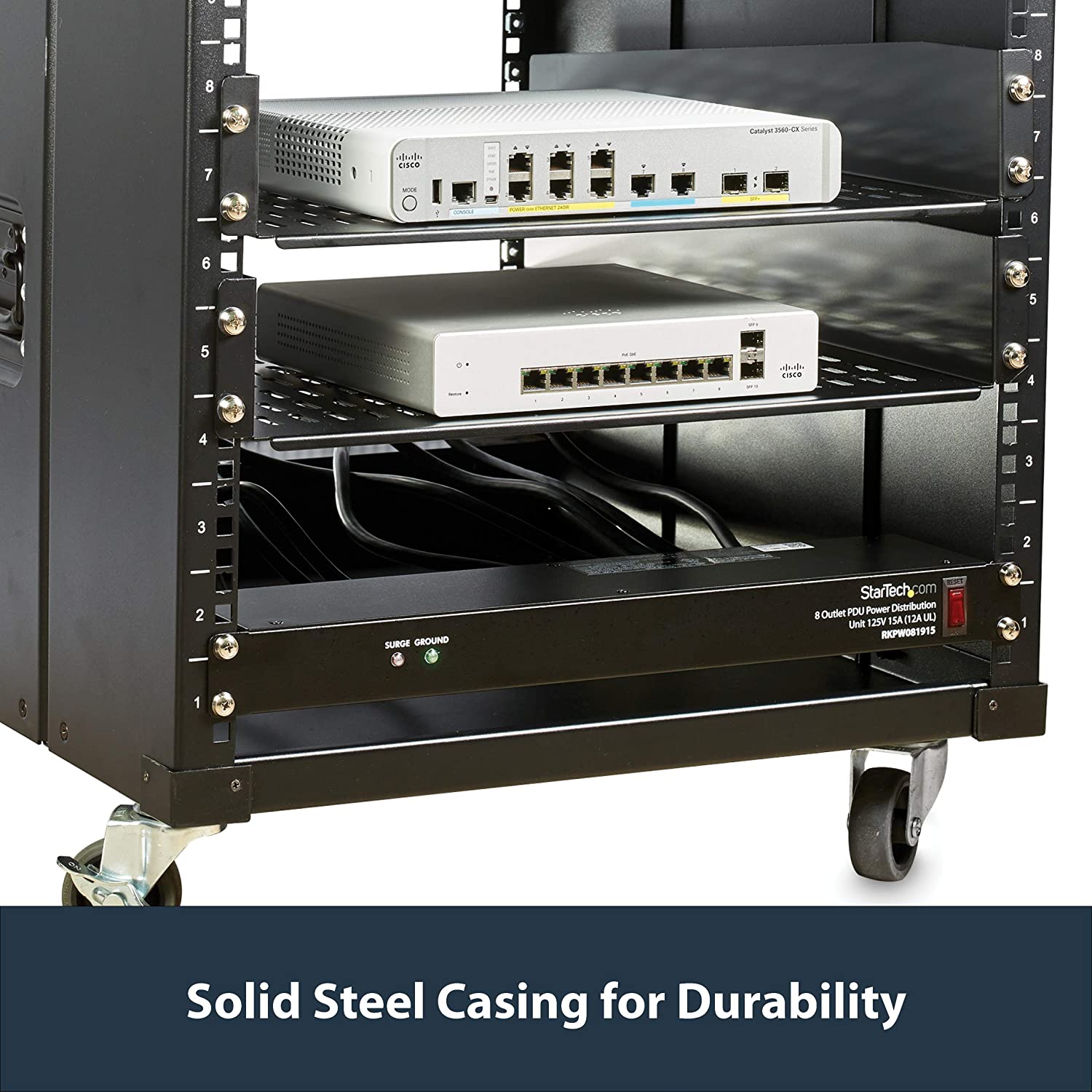 The Horizontal Rack Mount PDU delivers a cost-effective power distribution solution for your server rack or cabinet with 8-outlet (120V/15A). Hassle-Free Equipment Installation the 1U switched PDU strip can be mounted horizontally in any server rack 4 inches deep or greater, to supply eight 120V/15A power ports/outlets, and features a rugged steel casing to ensure maximum durability. Protects your equipment the front of the surge protector features two LEDs to indicate proper ground and surge detection while enabling you to control the power state with an illuminated power/reset switch. To prevent costly breakdowns of connected devices, the rack mount PDU features a built-in circuit breaker and reset switch, ensuring dependable performance of vital data center equipment. This unit is backed by a lifetime warranty with free technical support.