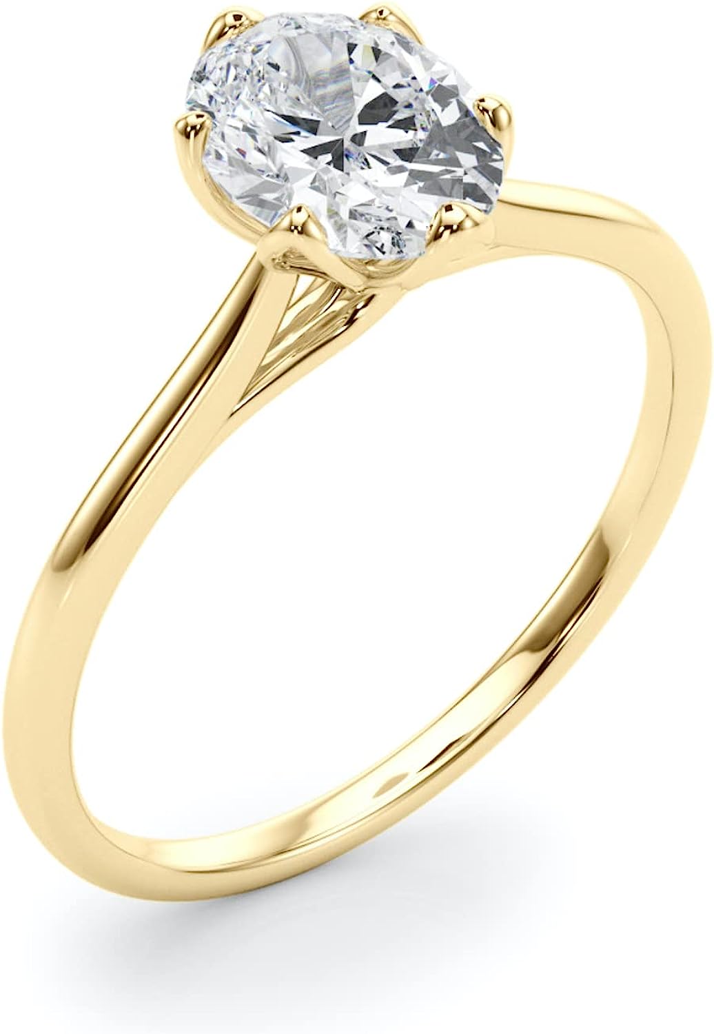 1.5CT Lab-Grown Diamond 18K Yellow Gold Oval-Cut Solitaire Engagement Ring, 6.5