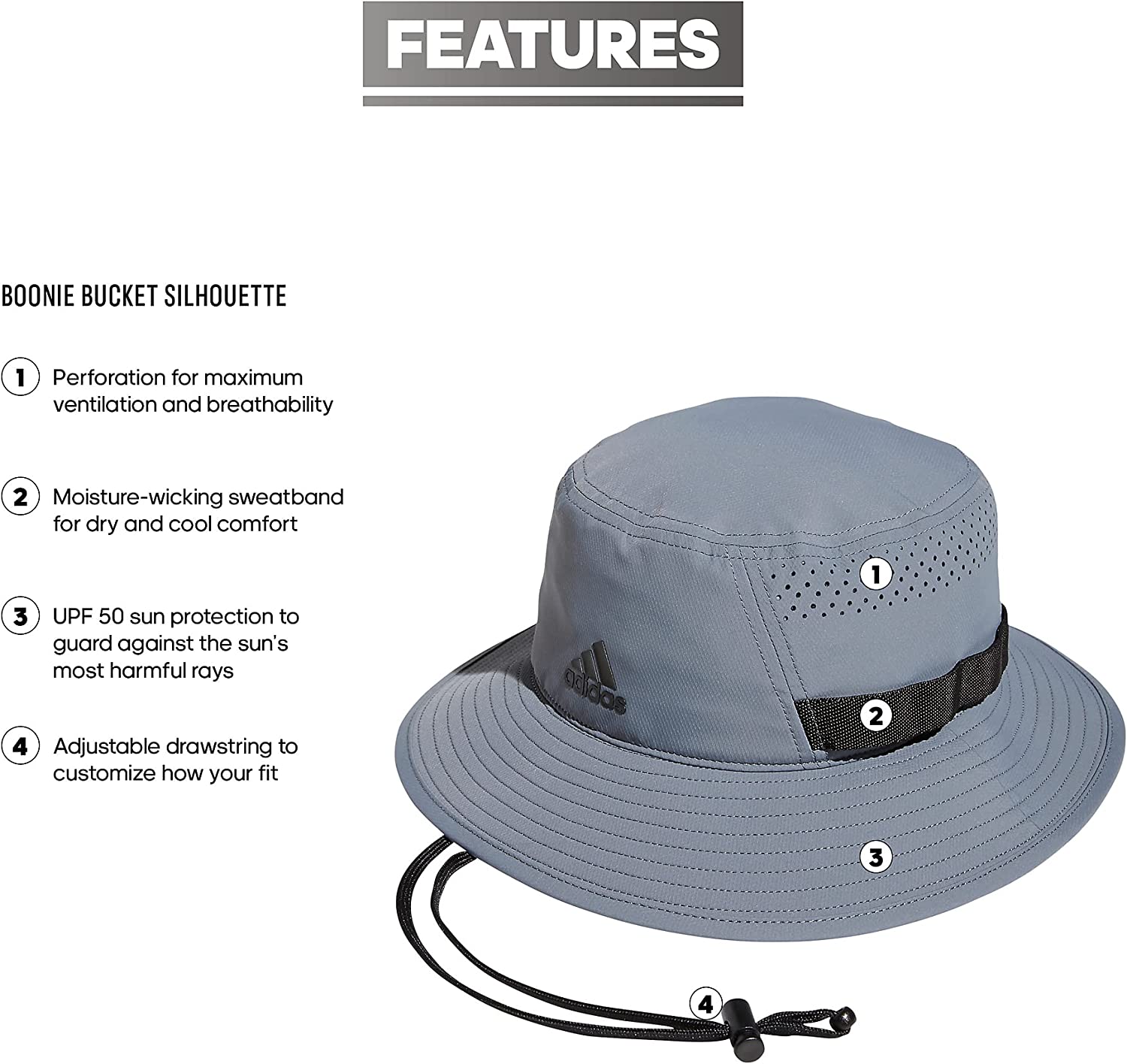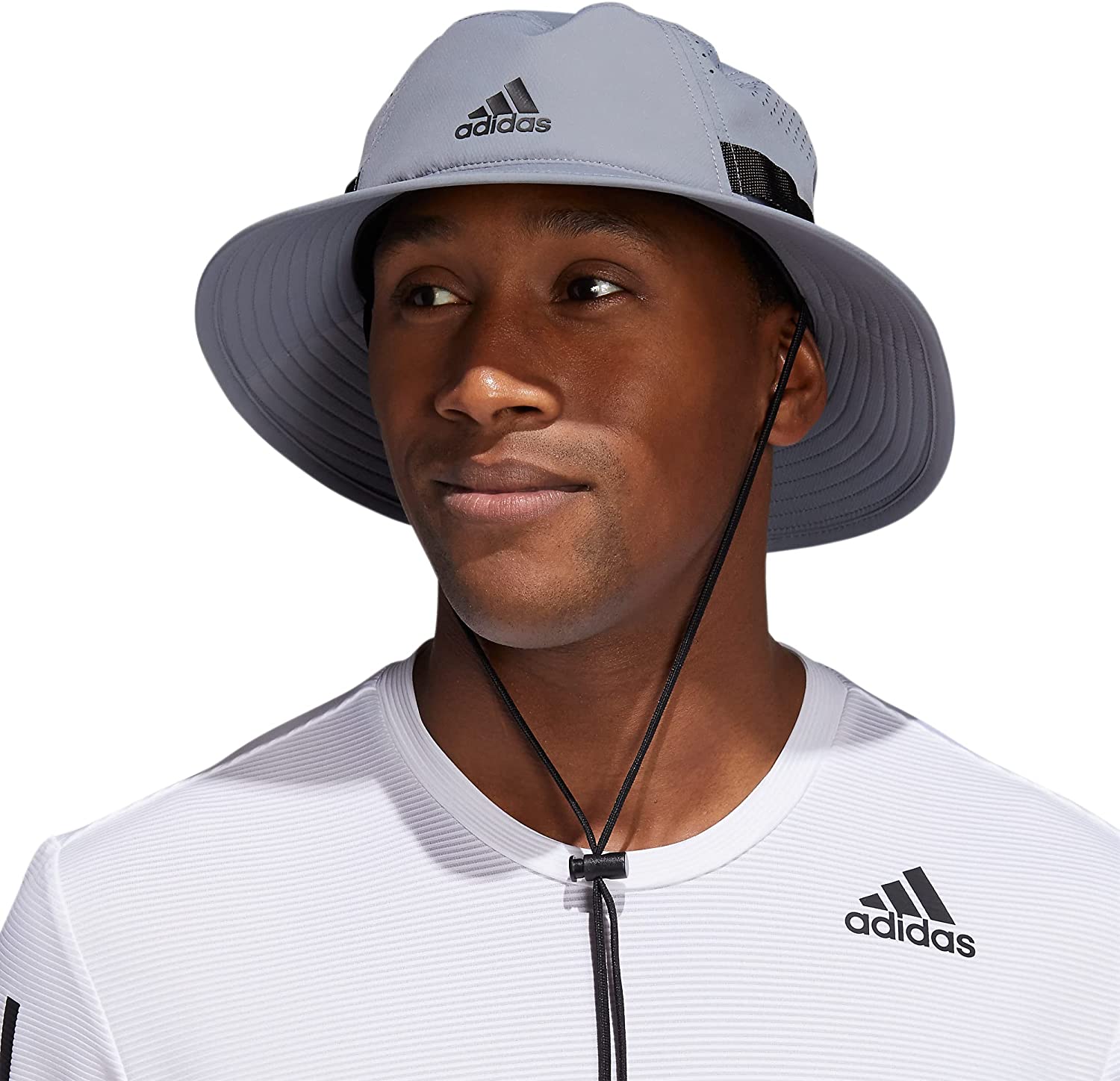 Keep covered on sunny days in this men's adidas bucket hat. Engineered perforations keep the air flowing to help you stay cool and dry. An adjustable chin strap lets you personalize the fit.