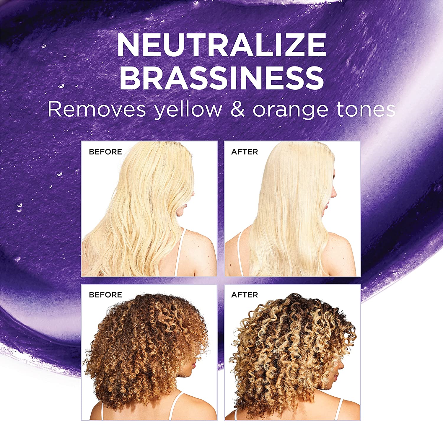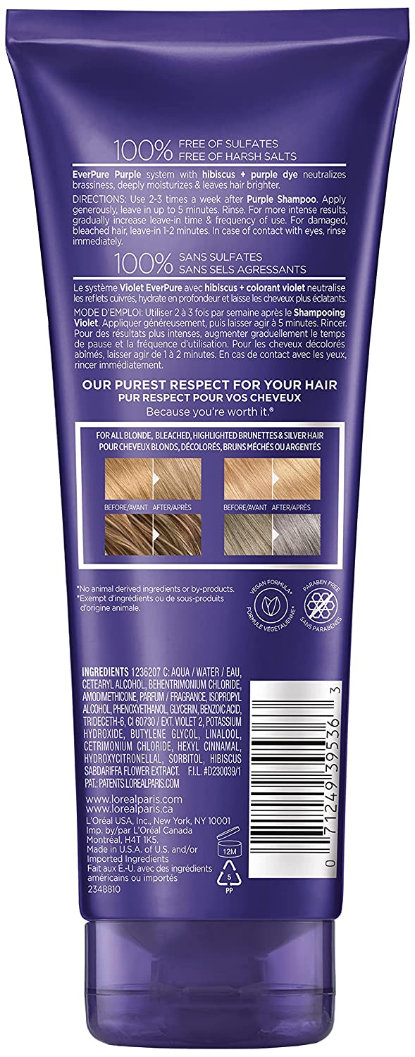 • L'Oreal Paris EverPure Sulfate Free Purple Shampoo and Conditioner provides color protection and corrects brassy blonde with yellow and orange tones