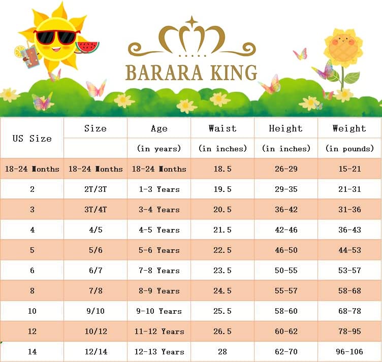 • Size 2=2T Size 3=3T Size 4=4T thanks! Material:100% cotton, keep her cool and comfy all day, they are ideal for everyday wear.