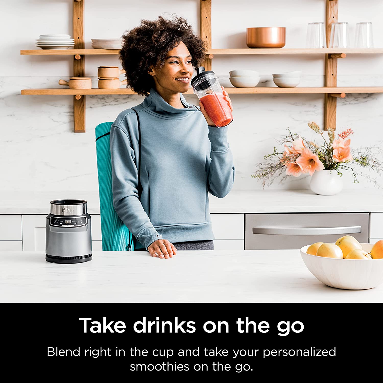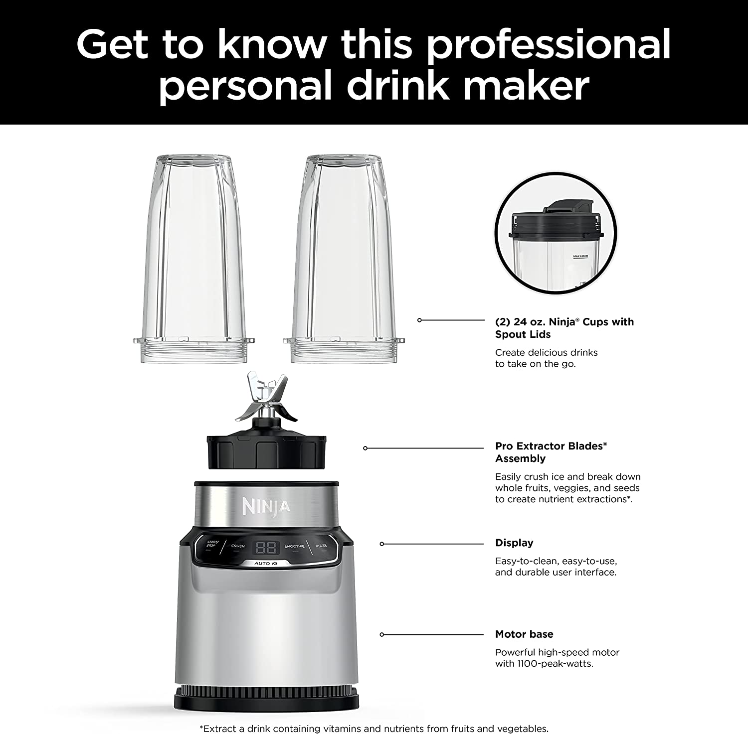 Ninja BN401 Nutri Pro Compact Personal Blender, Auto-iQ Technology, 1100-Peak-Watts, for Frozen Drinks, Smoothies, Sauces & More, with (2) 24-oz. To-Go Cups & Spout Lids, Cloud Silver