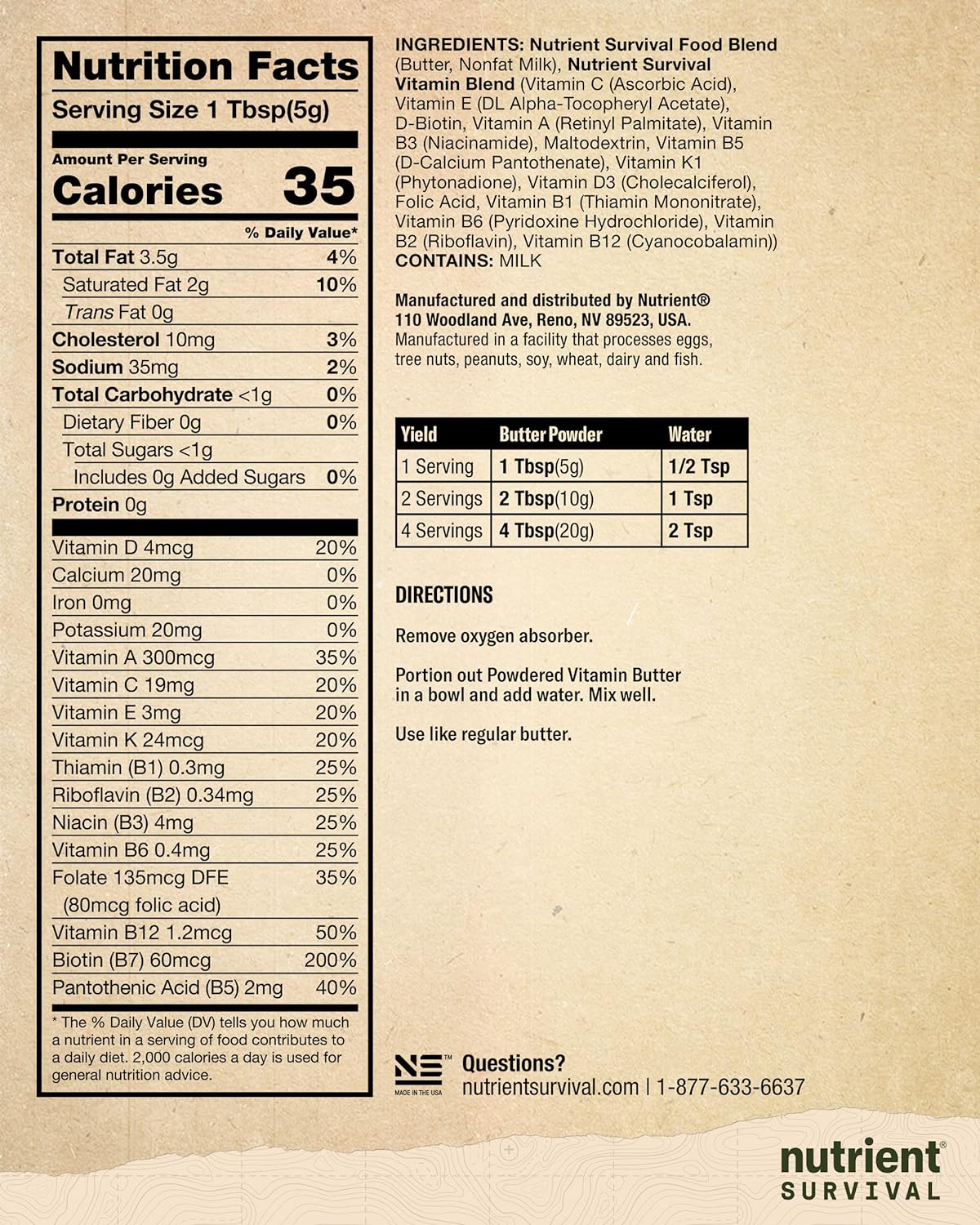 Nutrient Survival Essentials Vitamin Powdered Milk,Vitamin Butter Powder, Powdered Eggs Blend, Freeze Dried Prepper Supplies & Emergency Food Supply, Shelf Stable Up to 25 Years