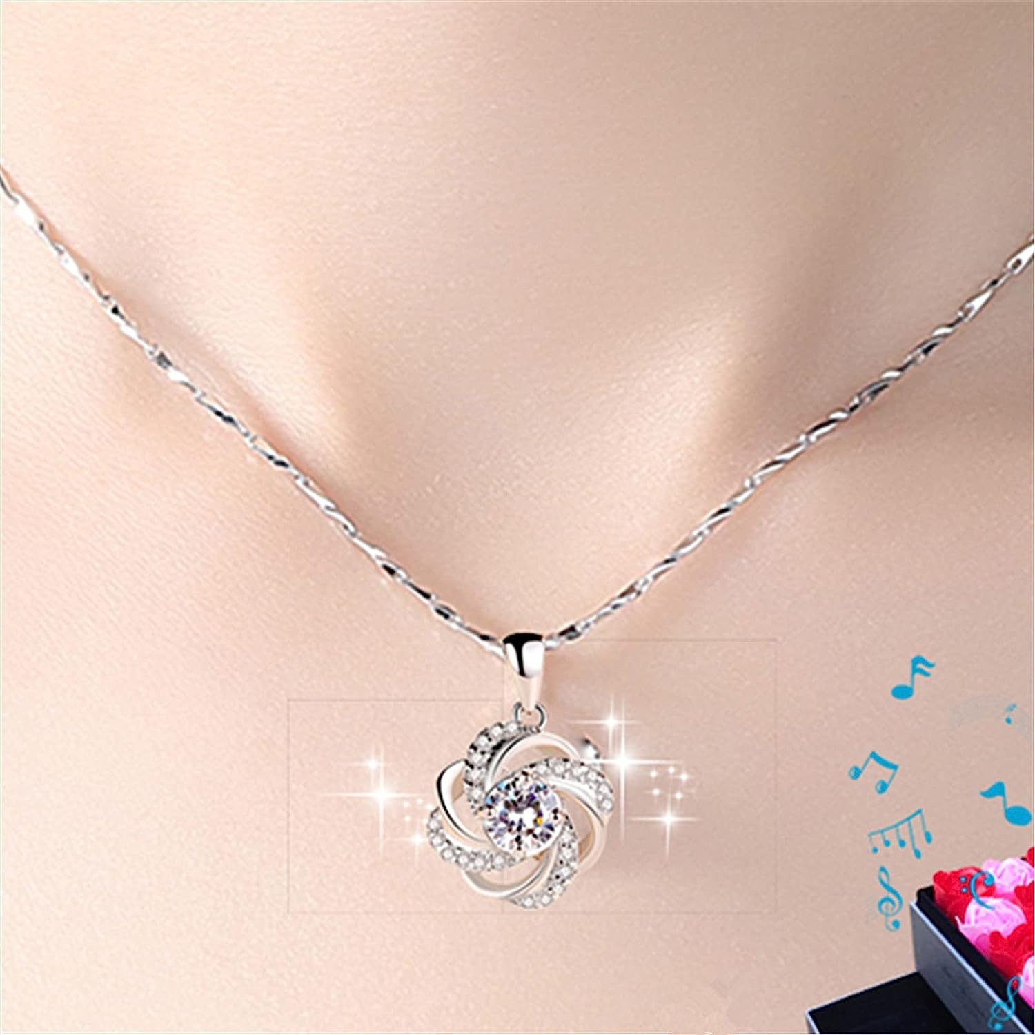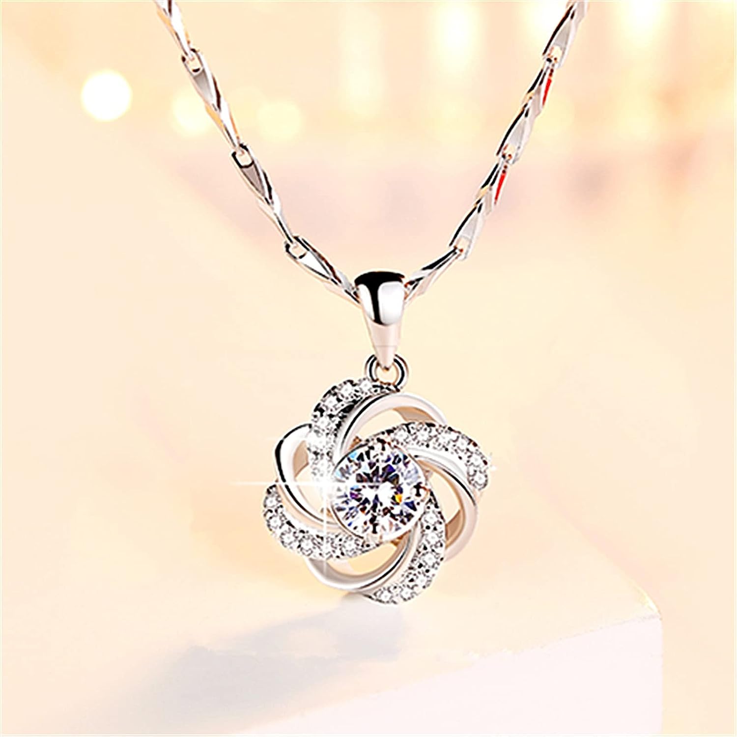 JUNZAI Necklace for Women Pendant Necklaces with Cubic Zirconia Valentines Mothers Day Anniversary Birthstones Jewellery Gifts for Wife Girlfriend Her