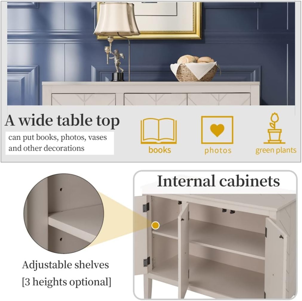 BOGE Buffet Sideboard Wooden Cabinet with Adjustable Shelves for Entryway Living Room Bedroom Antique Gray Sideboard