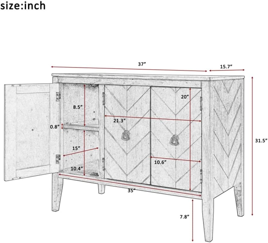 JFGJL Buffet Sideboard Wooden Cabinet with Adjustable Shelves for Entryway Living Room Bedroom Antique Gray Sideboard