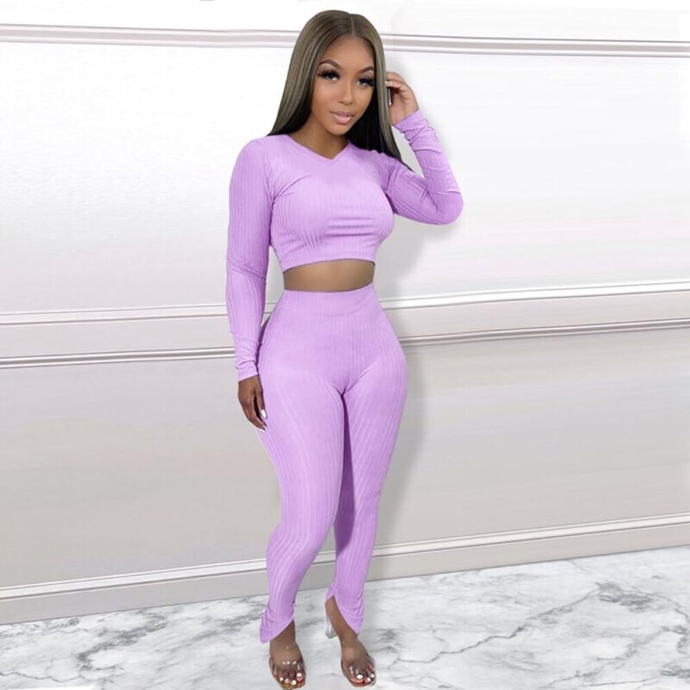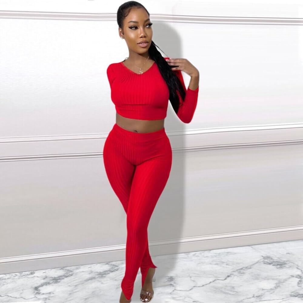 QueenLine 10pcs Wholesale Items for Business In Bulk Clothes Solid Knit Ribbed Two Piece Sets Women Fall Outfits Crop Top + Leggings Tracksuit Red S