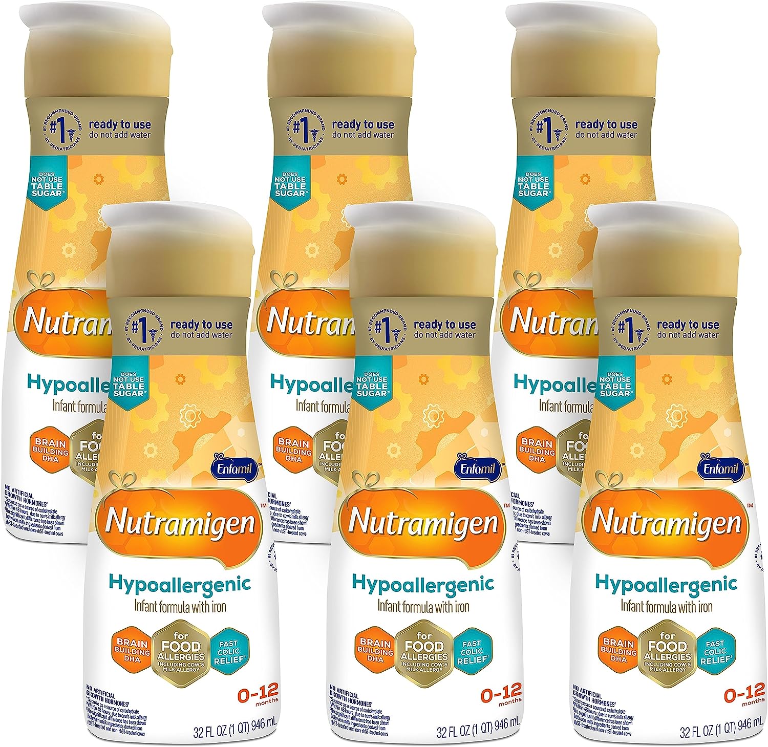 Enfamil Nutramigen Infant Formula, 12.6 Oz (Pack of 6) & Nutramigen Infant Formula, Hypoallergenic and Lactose Free Formula, Fast Relief from Severe Crying and Colic, 32 Fl Oz, Pack of 6